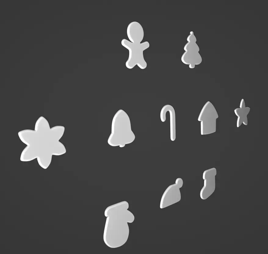 A set of high-poly Christmas cookie shapes, designed specifically for 3D printing.