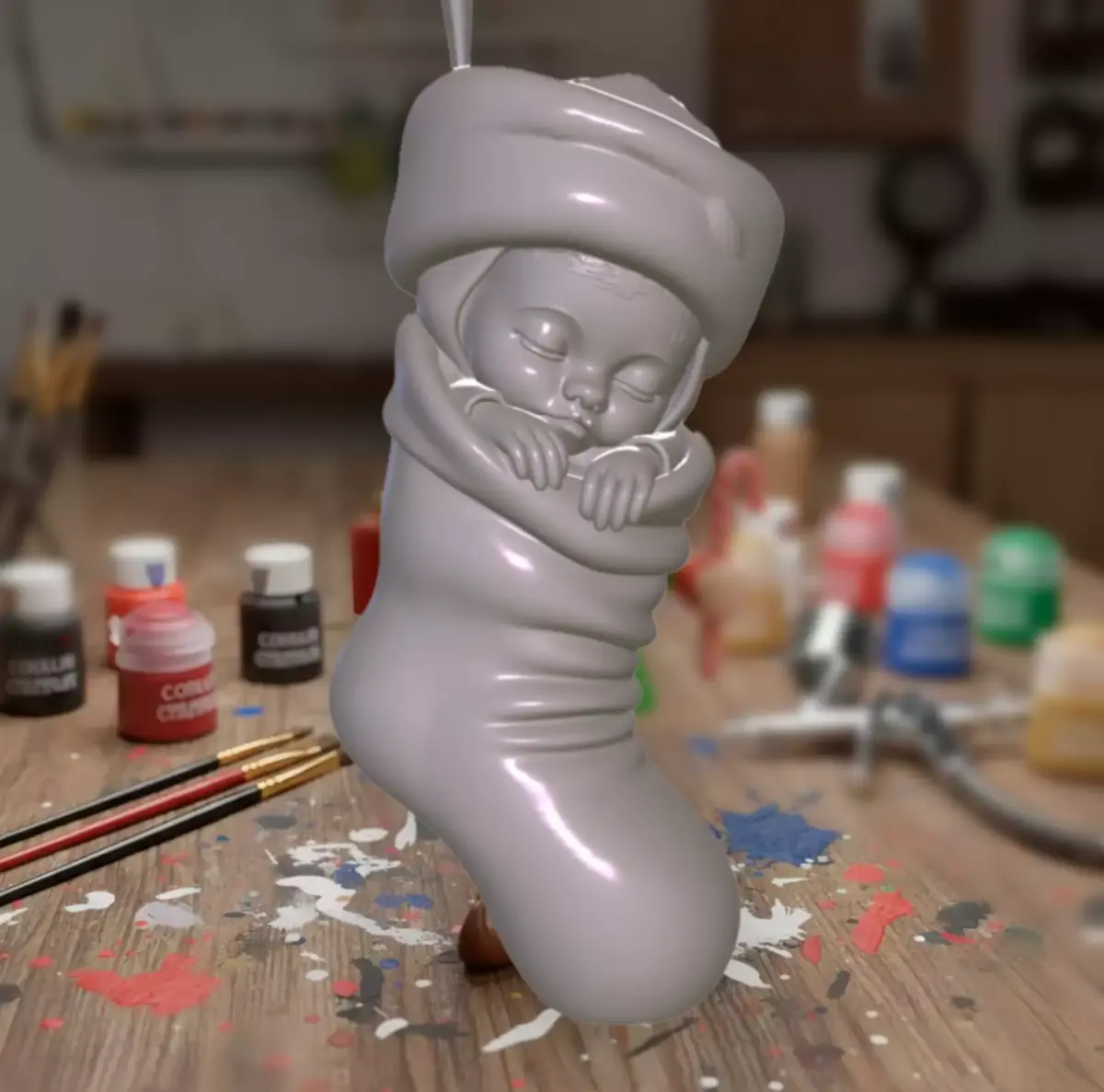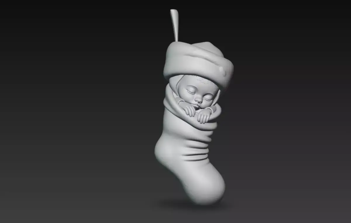 Christmas Creations -Stylised Cute Holiday Sock with Child Baby 3D print model
