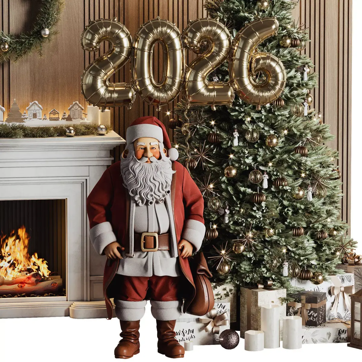This is a fully detailed and realistic Christmas models designed for high-end rendering and holiday visualization projects.The package includes a high-quality Santa Claus 3D model, a decorated Christmas tree, a fireplace with realistic fire, gift boxes, lanterns, ornaments, garland, and golden “2026” balloon numbers.