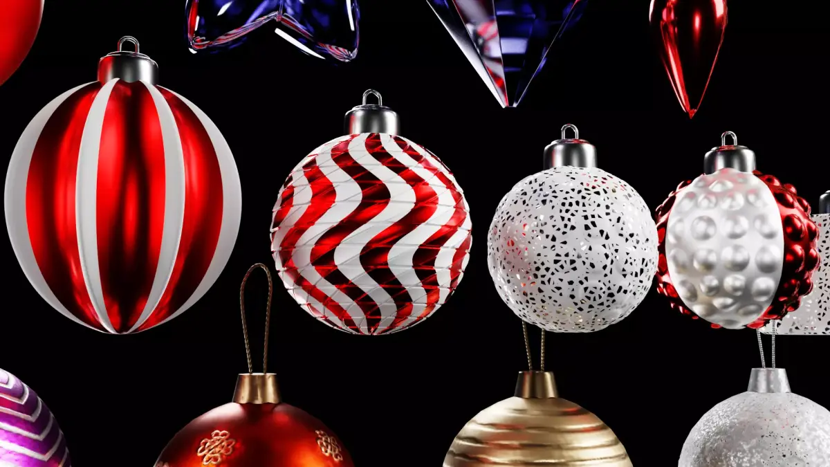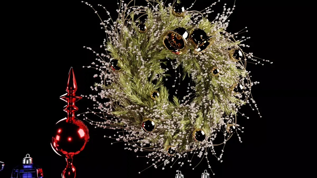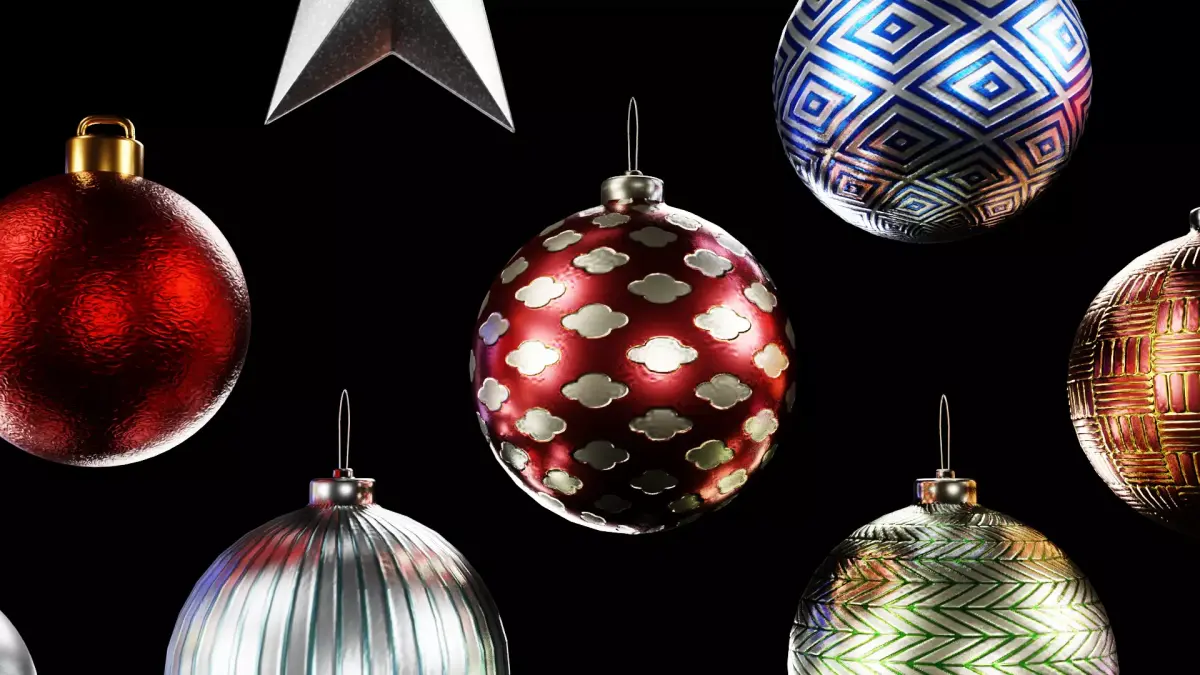 This is a high-quality 3D Christmas Decoration Pack, which includes a variety of festive elements, reproduced with realistic materials, detailed glare and accurate proportions. The pack includes gift boxes with colorful ribbons, voluminous gold stars of various sizes, a large collection of Christmas balls with glossy, matte, metallic and patterned surfaces, as well as unique toys of unusual shapes - bells, teardrop pendants, stars and abstract ornaments. A decorative wreath with small branches and gold accents adds completeness and warmth to the set. All objects are made with attention to detail, have neat geometry and materials that behave perfectly under Cycles or Eevee. Suitable for creating holiday scenes, advertising compositions, interior visualizations, renderings of gift sets and all winter projects.