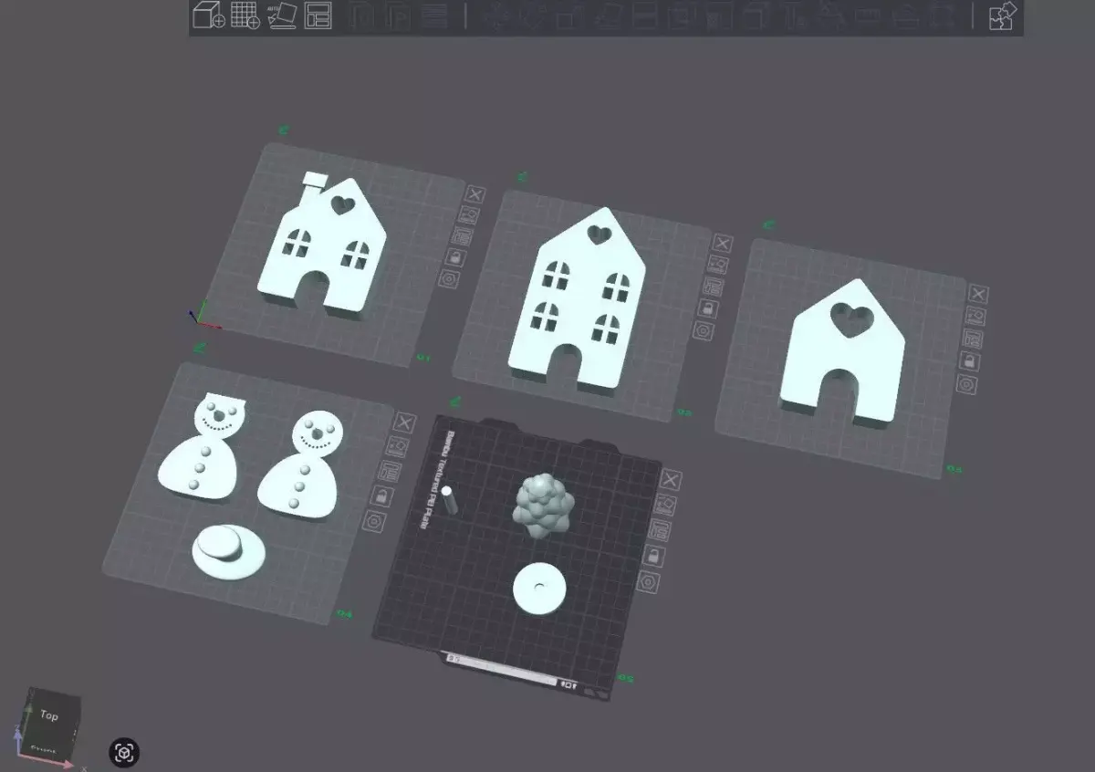 Christmas Decoration STL Set – Snowmen, House, and Tree
