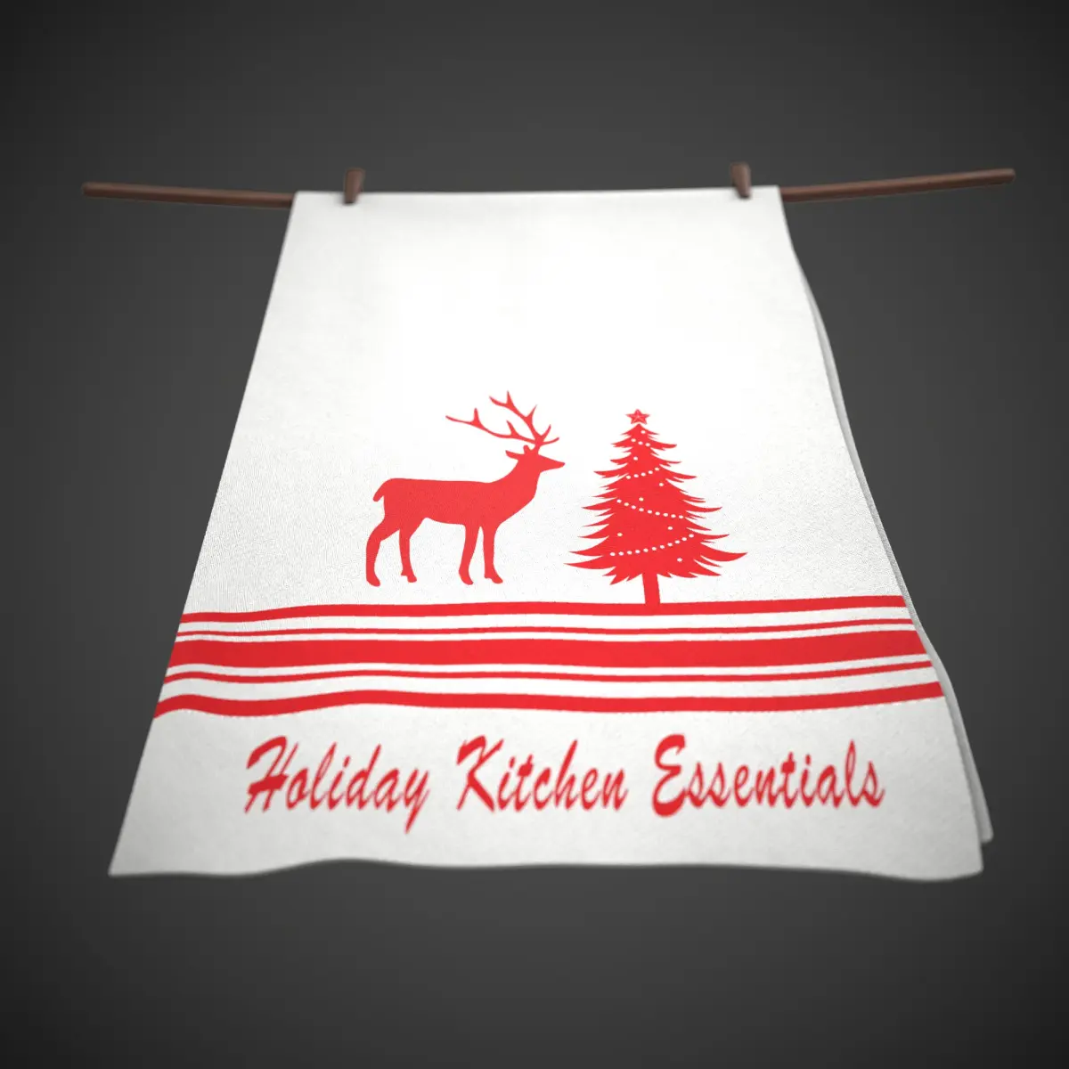 Quality: OptimalType : Home and leisureCategory : Christmas goodsSubcategory : Christmas decorationsDescription:Reindeer Tea Towels: These festive tea towels feature a cute reindeer design on a red and white striped background. Made of 100% cotton, they are perfect for drying dishes or adding a touch of holiday cheer to your kitchen. The tea towels come in a clear plastic bag with a label that says Holiday Kitchen Essentials.