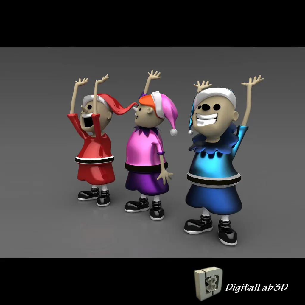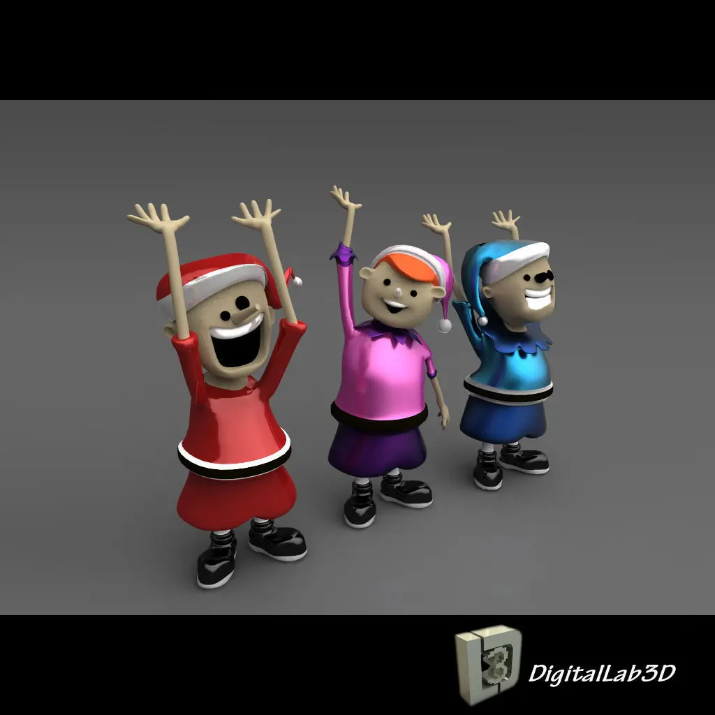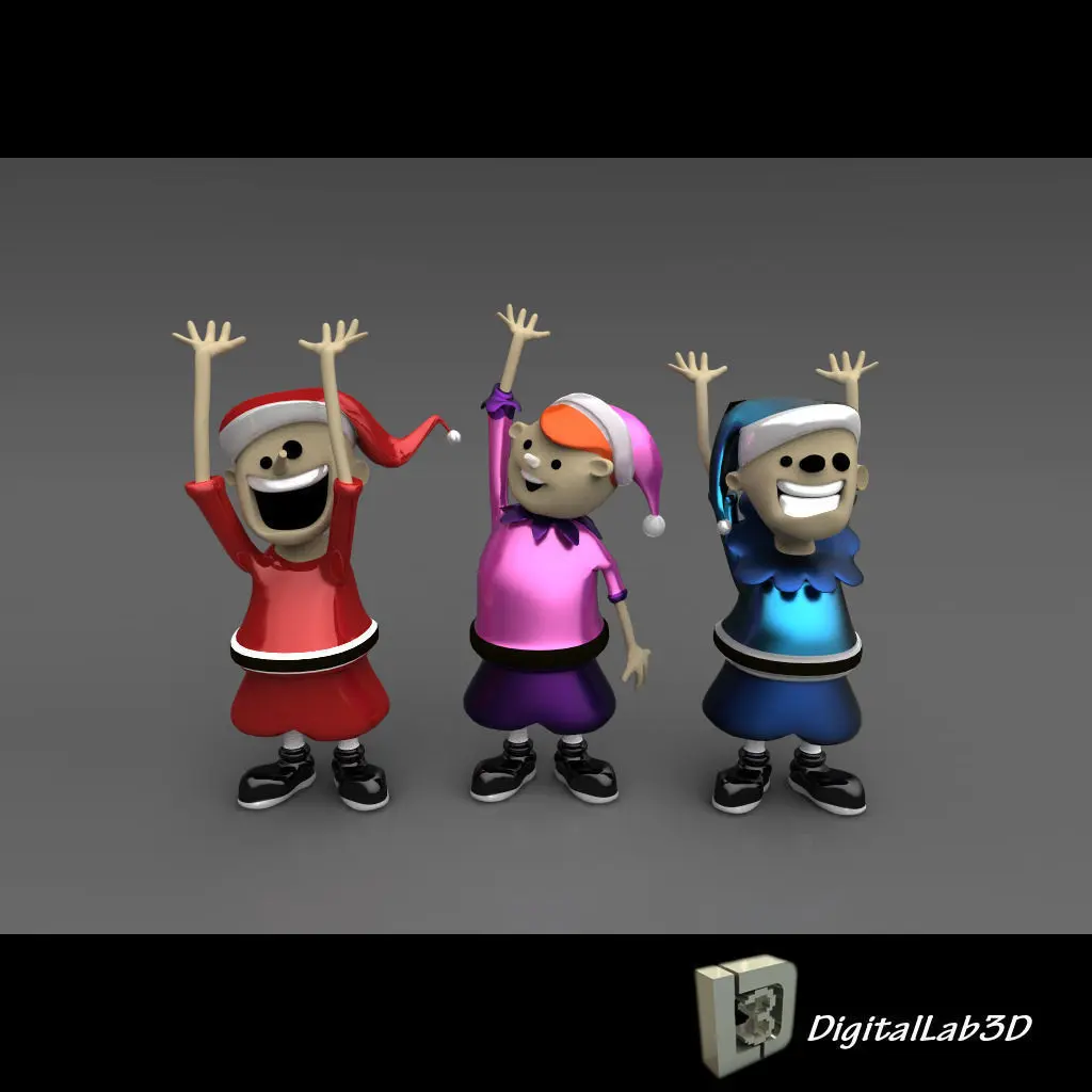 A 3d model Christmas Elves. Complete with material colors. Ready for 3d presentation/animation.