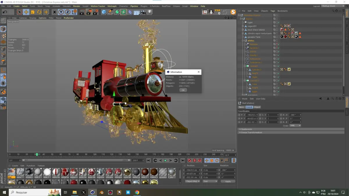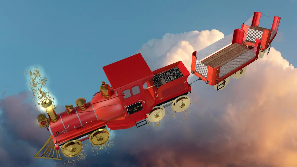 You can move the cars to any side because they are already on the axis. The bell already in balance and the particle effects on the chimney and wheels were created in cinema 4D R19 and are in the project.