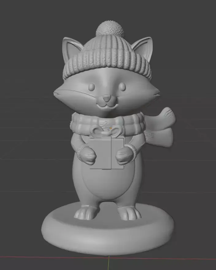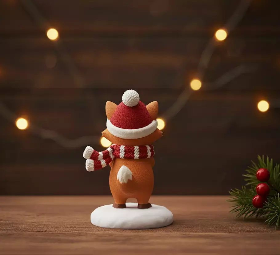 Design ConceptThis Christmas fox figurine is designed with a cheerful and festive look featuring a fox dressed in winter attire, carrying a small gift. It's meant to capture the joyful spirit of winter holidays and serve as a charming decoration.