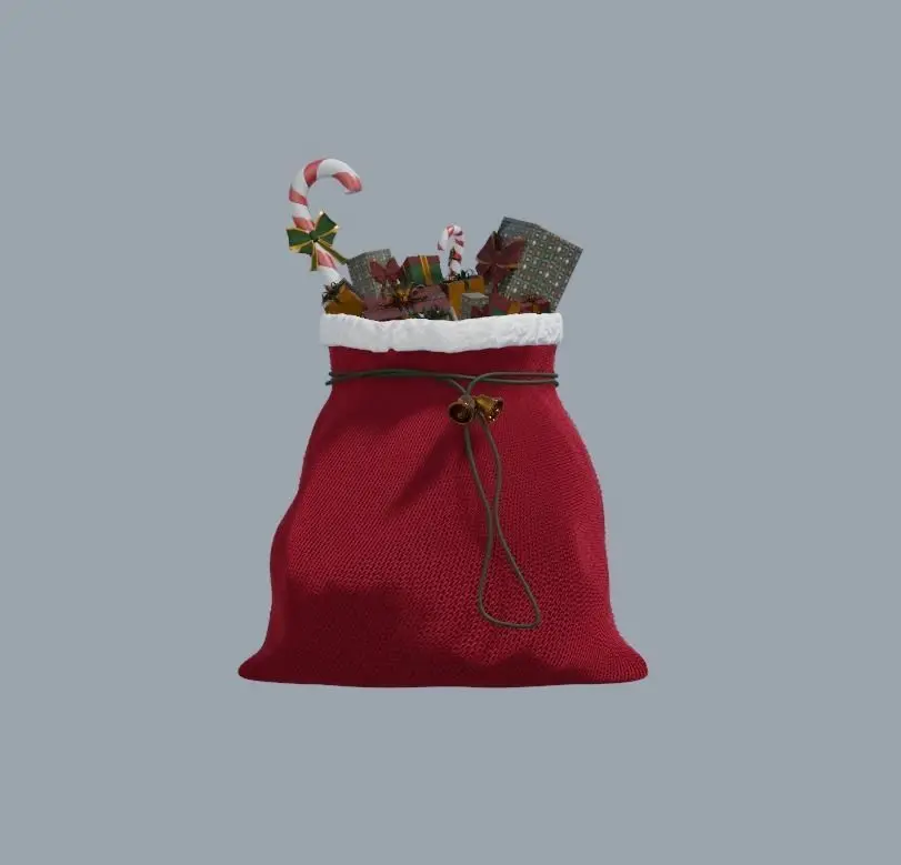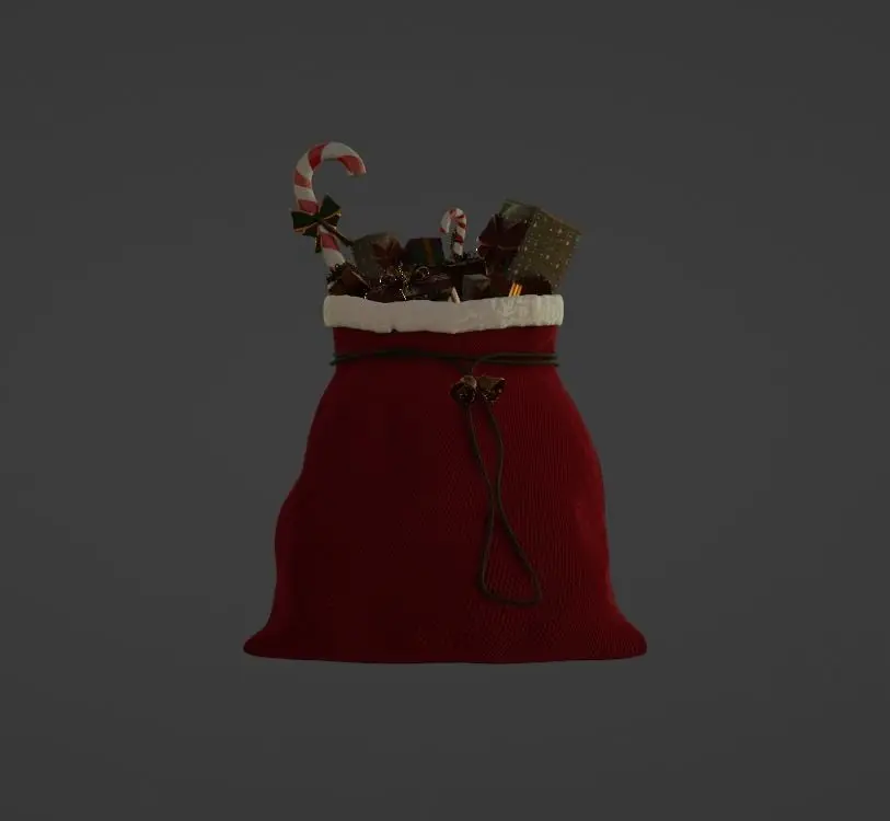 A high quality 3d model of christmas gifts and of the santa's bag.