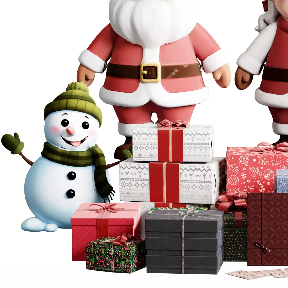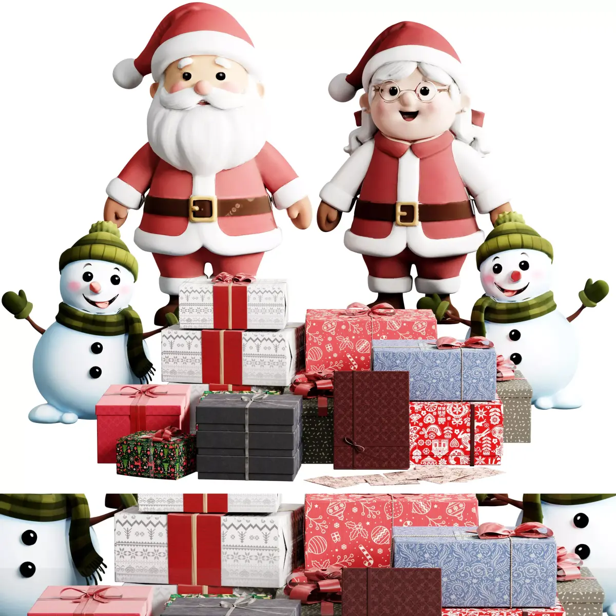 Christmas Gifts Set with Snowman and Santa Claus 07 3D model