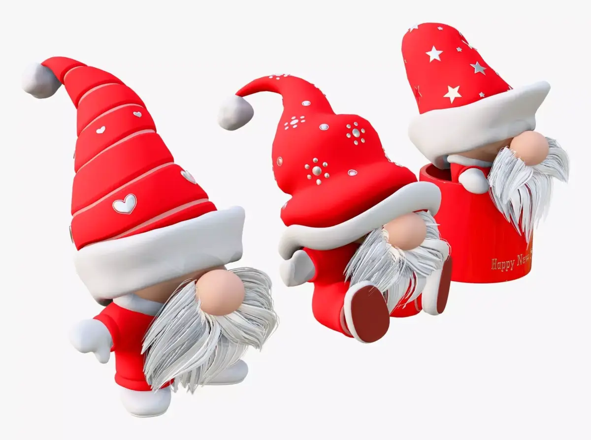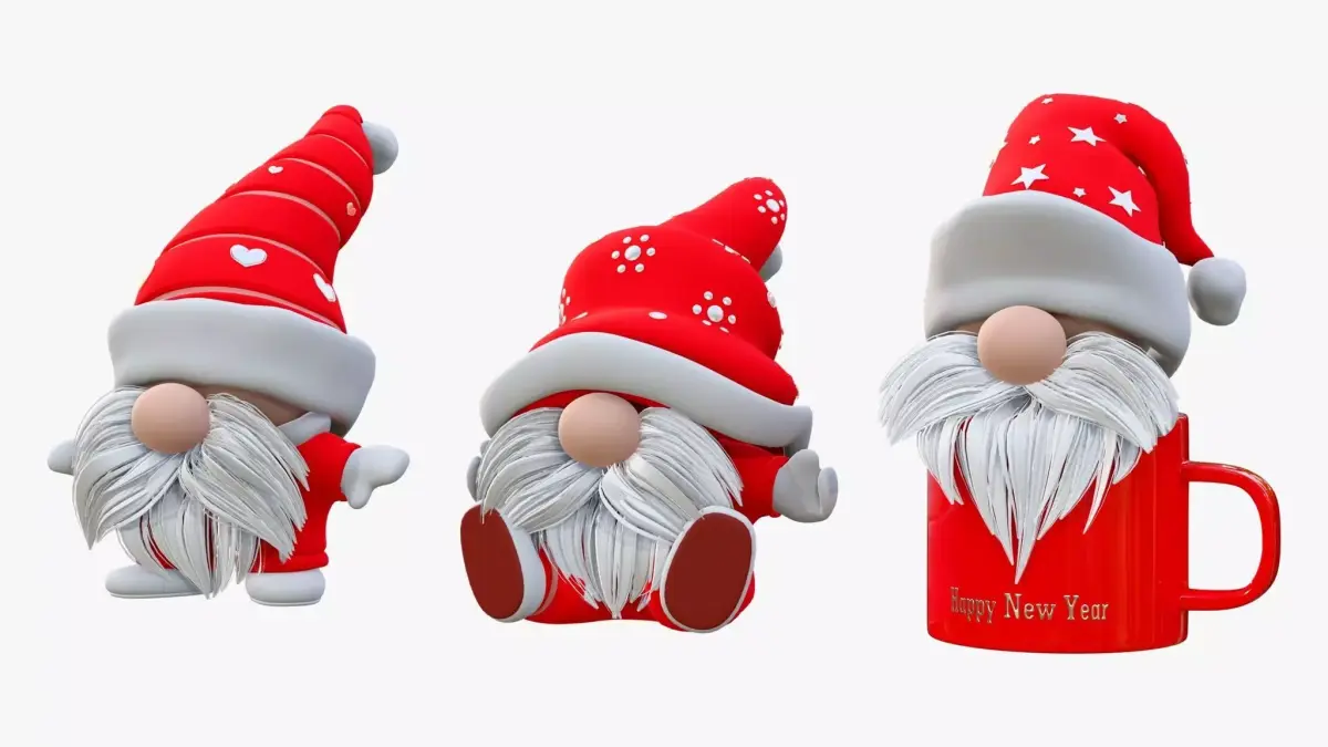 The 3D model 'Christmas Gnome Decoration Set M1' is an unbranded design made for professional projects.