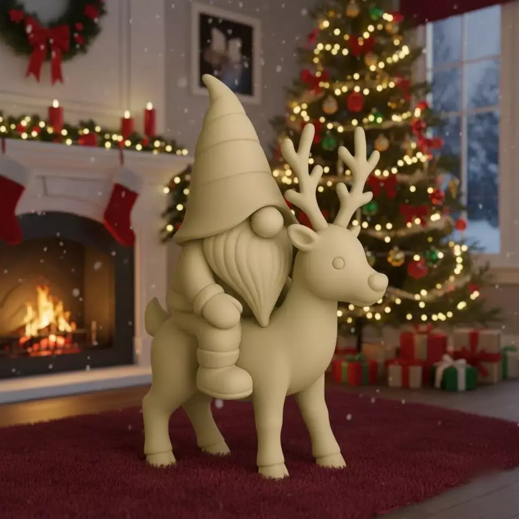 Bring Christmas magic to life with this cute gnome riding a reindeer! This 3D model is full of charm and smooth details, perfect for holiday decorations, collectibles, or 3D