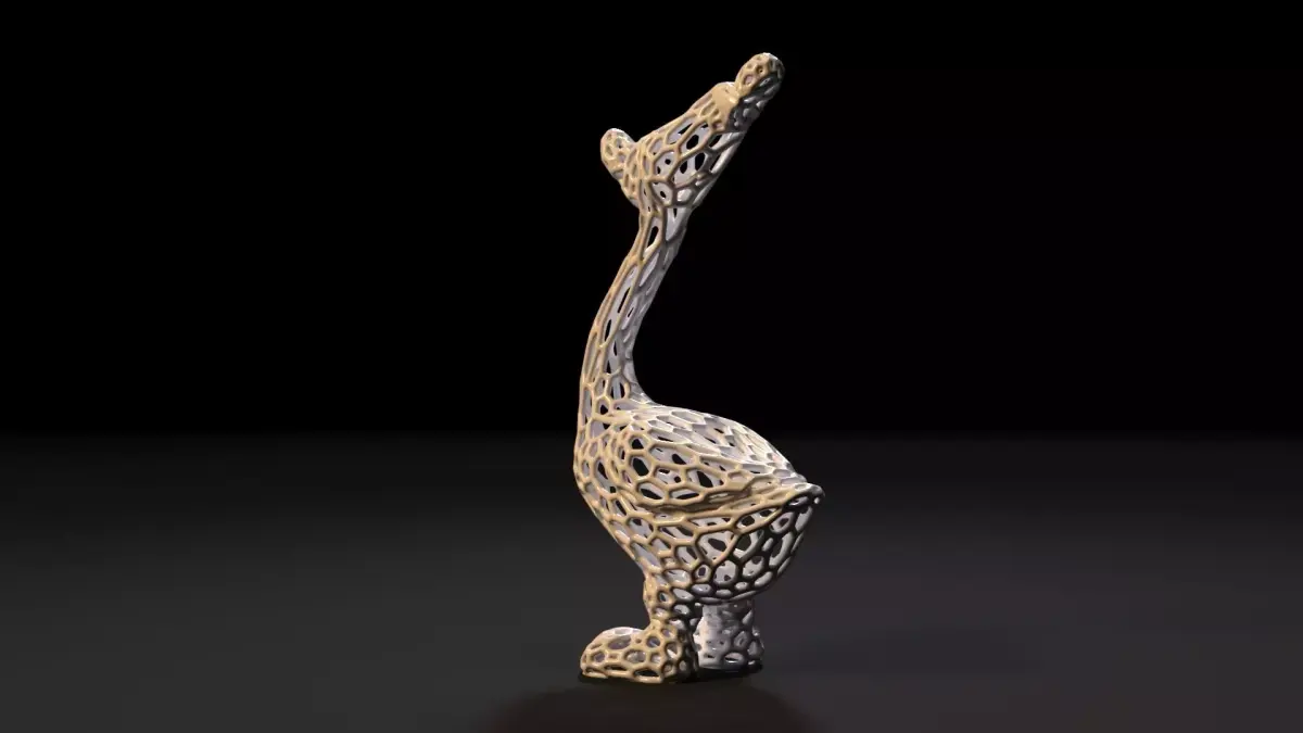 Let me introduce you to a unique 3D figurine model Christmas Goose in Voronoi style, created using Voronoi technique. This model combines elegance and modernity, thanks to its characteristic geometric design and airy structure.