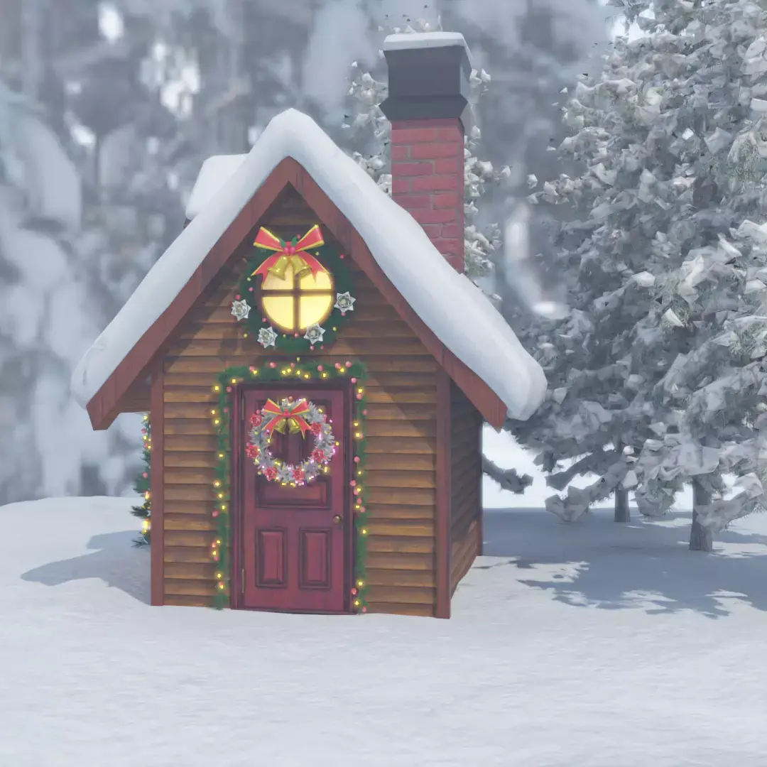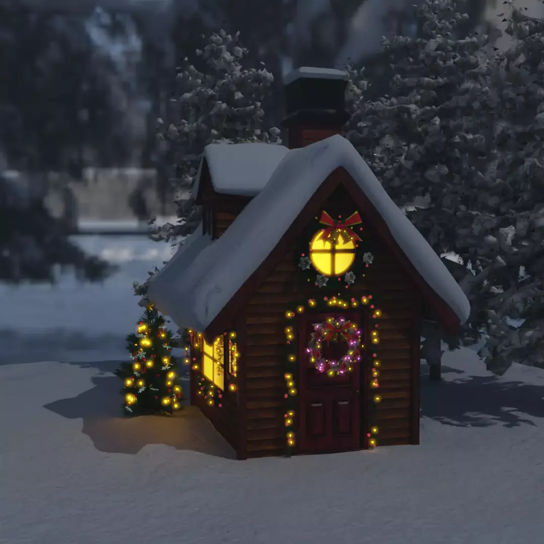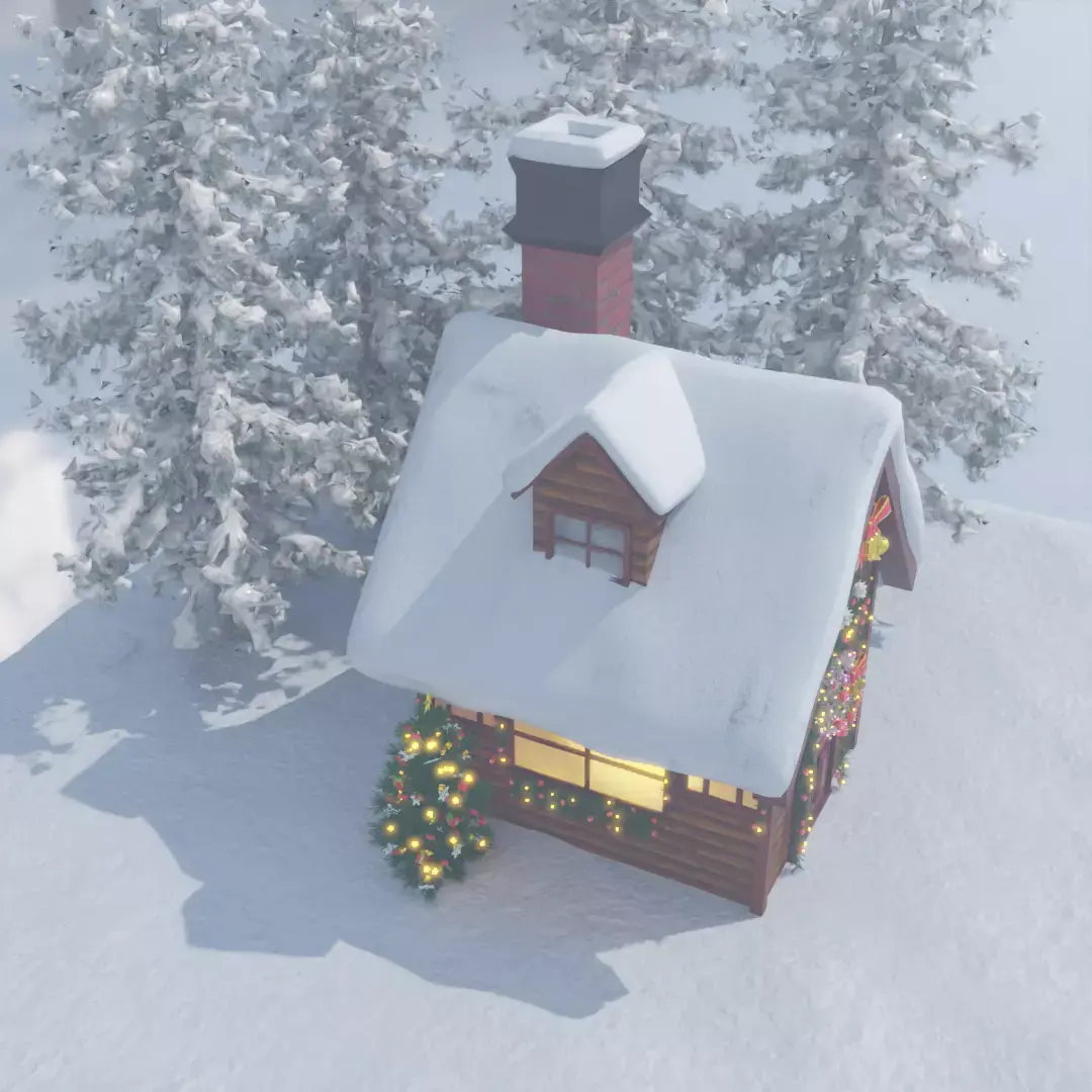 “A sparkling Christmas house illuminating the snowy night.”This 3D model of an illuminated house instantly conveys seasonal charm and excitement.