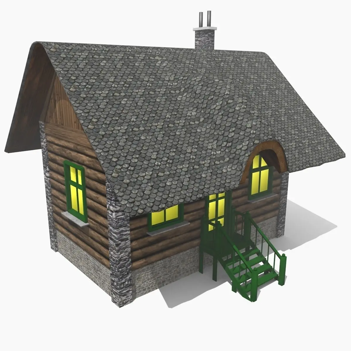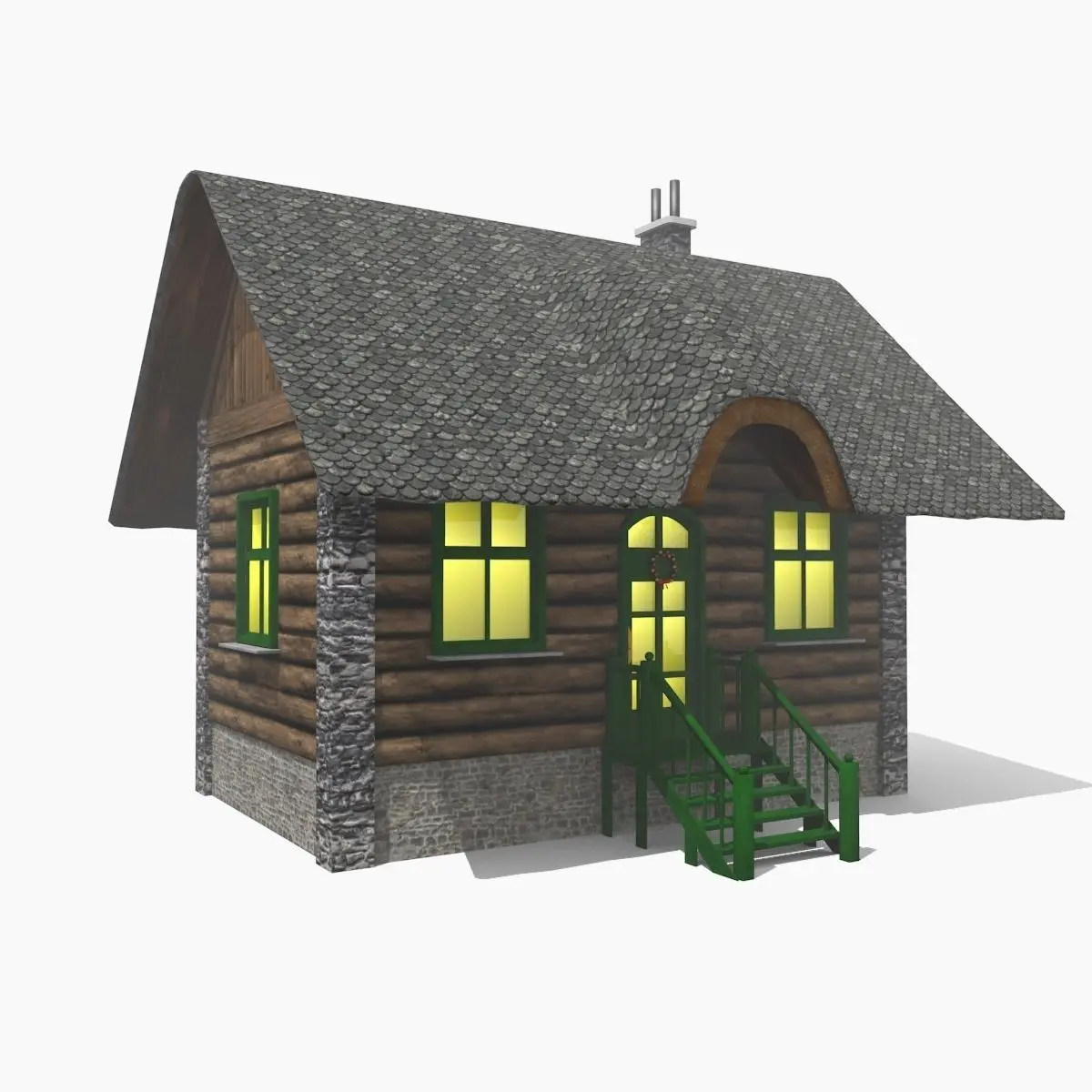 3D model of a lodge modelled in Blender v2.78. The model is completed of materials and textures.Only the external is modelled. The background scene with pines and the ground is included in the pack.The atmosphere effect visible in the first preview image is made in Blender.The lodge is detailed. You can choose to use the snow on the roof or not.The door and the windows can not be opened.The pine model is lowpoly.You can find the UV Layout in the ZIP - see folder 'UVLayout'.
