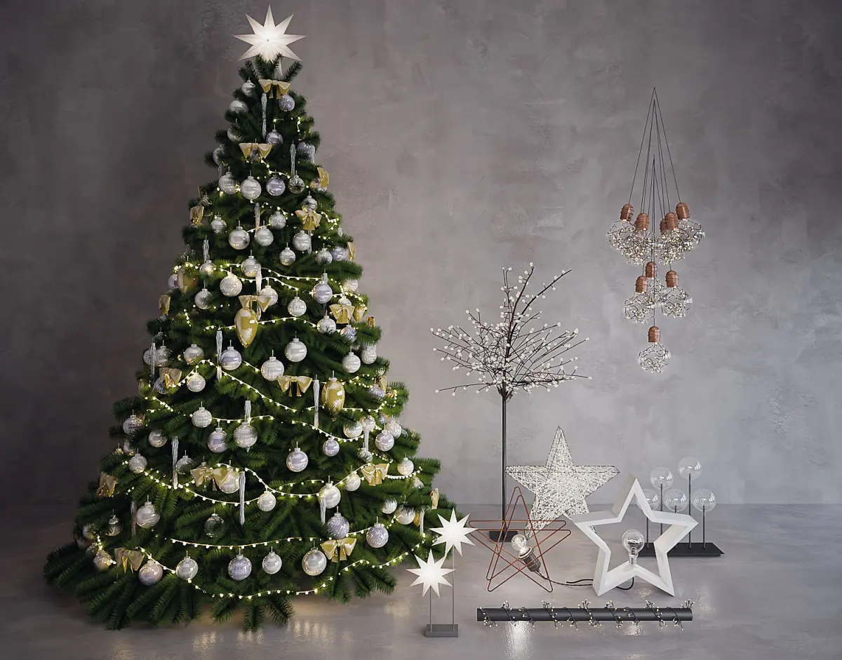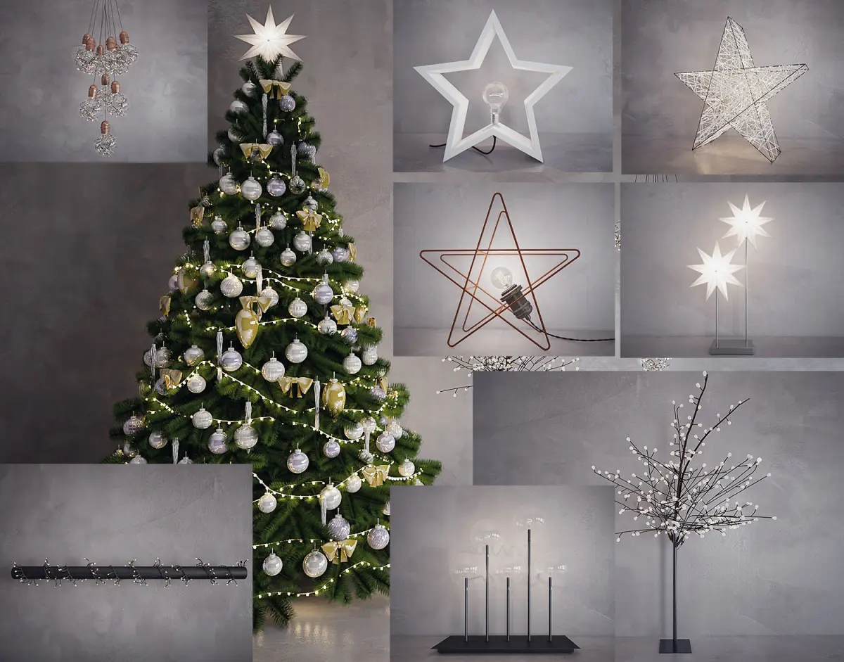 Updated model and fixed some errors in it. Also Added Cinema R21 standard version.Hiqh Quality Pack with christmas accessories and lighting. Model 01 comes with garland lights that are readymade to make around poles or rails or similar, you can copy it the length you want and it wil lbe seamless. Model 02 comes with a hanging roof lamp with copper threads and screws filled with beautiful garland lights inside to light up the good mood. Model 03 comes with 5 glass domes on a plate as a nice shelf,table or kommode accessory. Model 04 comes with a popular outdoor/indoor tree filled with light spheres to light up the dark in winters and give good christmas mood. Model 05 is a classic light star stuited for shelf,kommodes or similar. Model 06 is a table lamp formed as a star with nice clear bulb with threads and socket with a wire to give the realism. Model 07 is another classic christmas model with 2 smaller stars. These stars are the same that many people uses in theyre windows, so you can detach those and just hang it up in the windows, this model without detaching the star is suited as a nice accessory for tables, shelves, kommodes or similar. Model 08 is another star, made with double copper pipes, with a nice clean bulb with socket in the middle, it also comes with a twinned wire to get that realism. Model 09 is a big 230cm christmas tree with alot of accessories, christmas balls, garland lights twinned around the tree and other suitable accessories that makes the tree complete. This is one of a kind collection, and there are not many if any with similar models as this.These are made in Native 3dsmax 2019 with vray and are manually converted to Corona as well to get it 100 percent good.