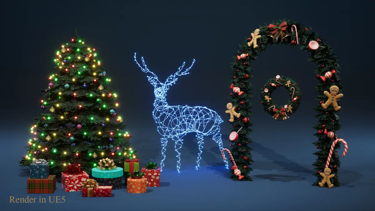Vertex Count: from 101 (toy) to 18960 (lights for car), 17574 for christmas tree