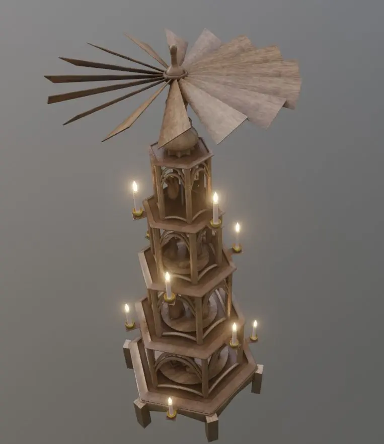 Here is version 2 of the Christmas pyramid with candle driven rotor.