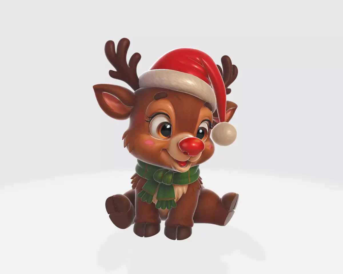 christmas reindeer, cute reindeer, rudolph 3d print, christmas decor, holiday decoration, christmas ornament, 3d print model, festive reindeer, santa hat reindeer, christmas gift idea, holiday figurine, winter decoration, christmas collectible, christmas model, cute christmas figure