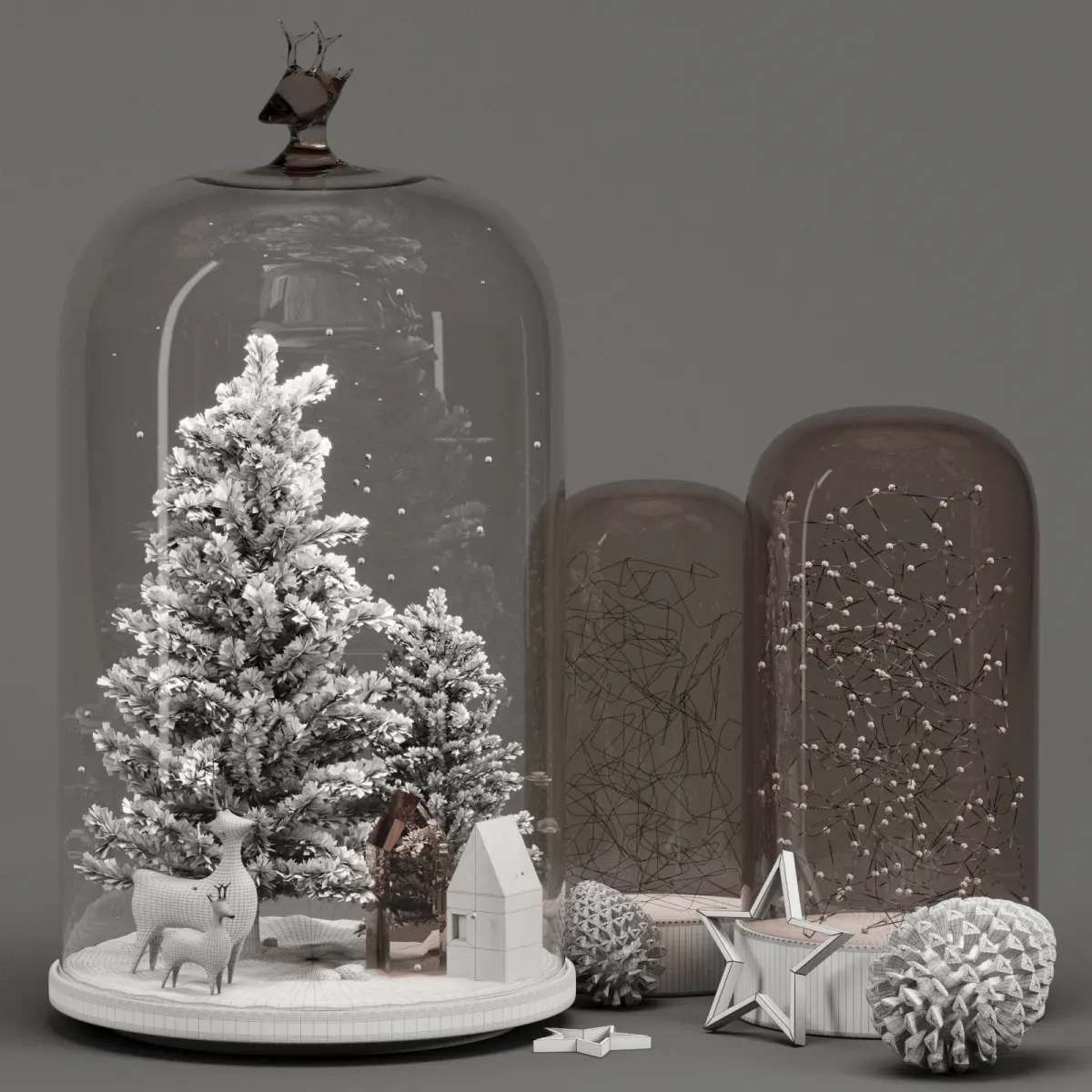 3D model of Tree, Christmas decoration set, Neon and Terrarium..All models, textures, and materials are named logically and in accordance with the items.All items are UVW mapped...........Also in my profile you can find different decorative sets to fill the interio