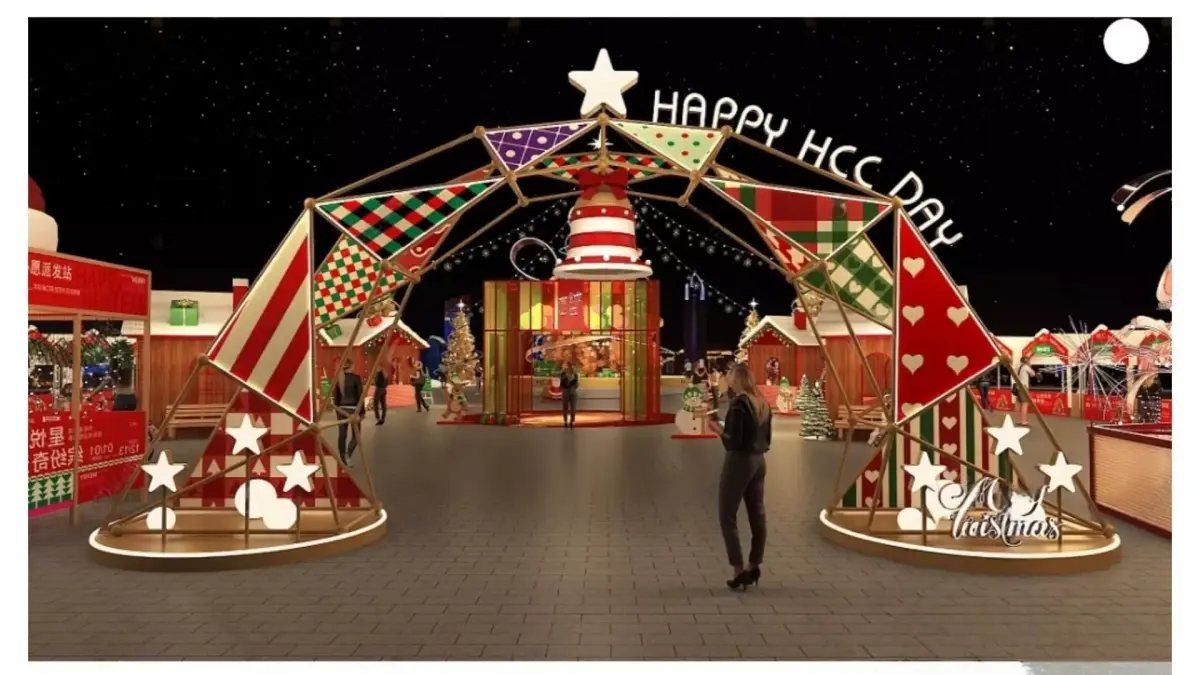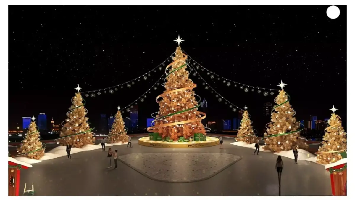 This is a set of Christmas-themed decorative installations designed for shopping malls or outdoor spaces. Centered around a giant golden spiral Christmas tree, it is paired with multiple small Christmas trees, a Christmas snow house, market stalls, and festive decorations (such as gift boxes, string lights, and Christmas arches). These elements together create a warm and lively Christmas town atmosphere.Ideal as an outdoor photo spot for shopping malls to attract visitors during the holiday season, the installation combines decorative appeal with interactivity. Its overall style is magnificent and brimming with a festive sense of ritual.