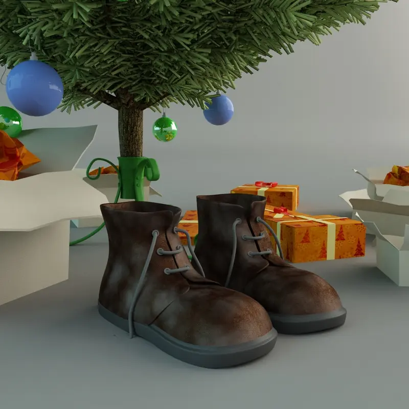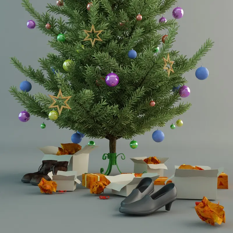 3D model of a Christmas tree in a little different style. Are you fed up symmetrically accurate tree, so this inspires you. The model also presents and shoes. The model is highly detailed.