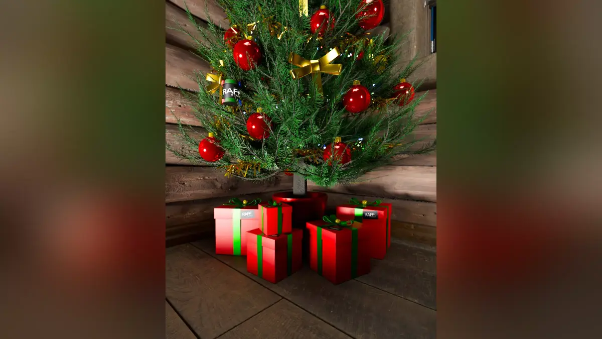 - Observation: Ornaments and gift tags include the text “Merry Christmas” (editable via BaseColor atlas)