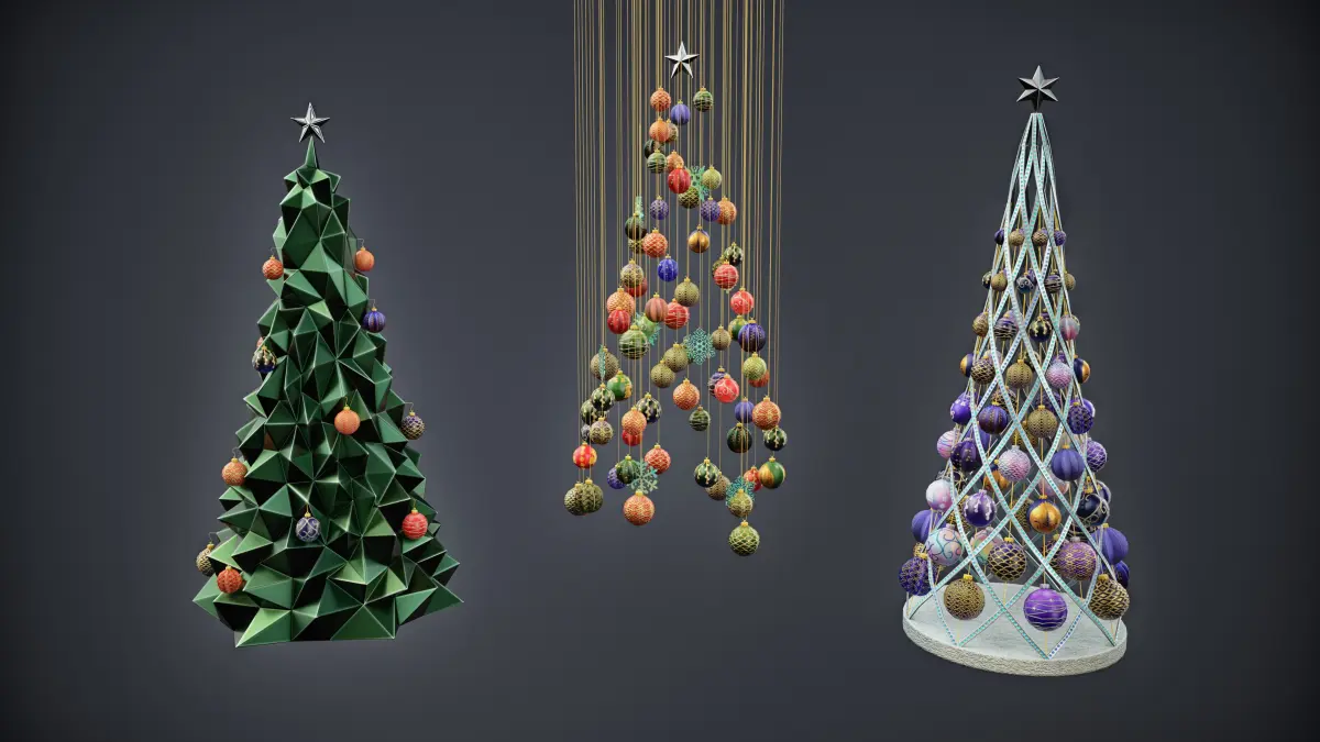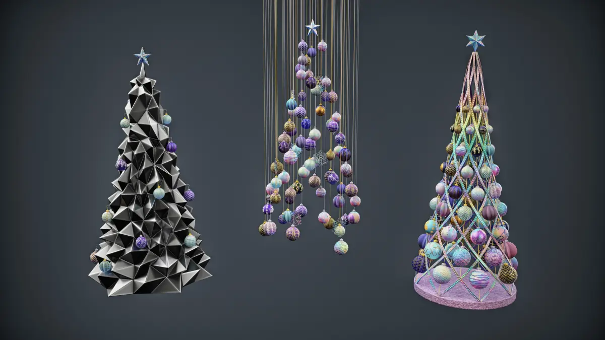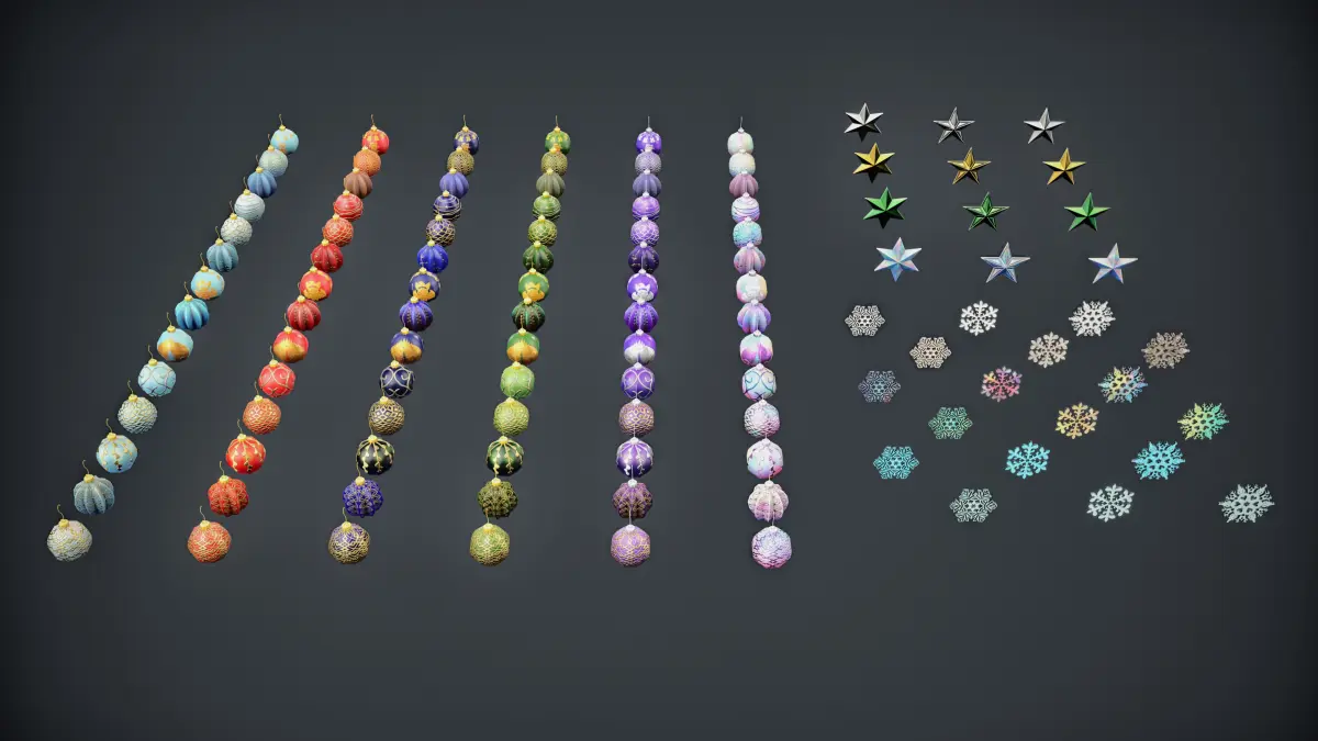 - High-Quality Textures:Tree Bases: 4K (4096x4096); Balls, Stars, and Snowflakes: 2K (2048x2048) and 1K (1024x1024).