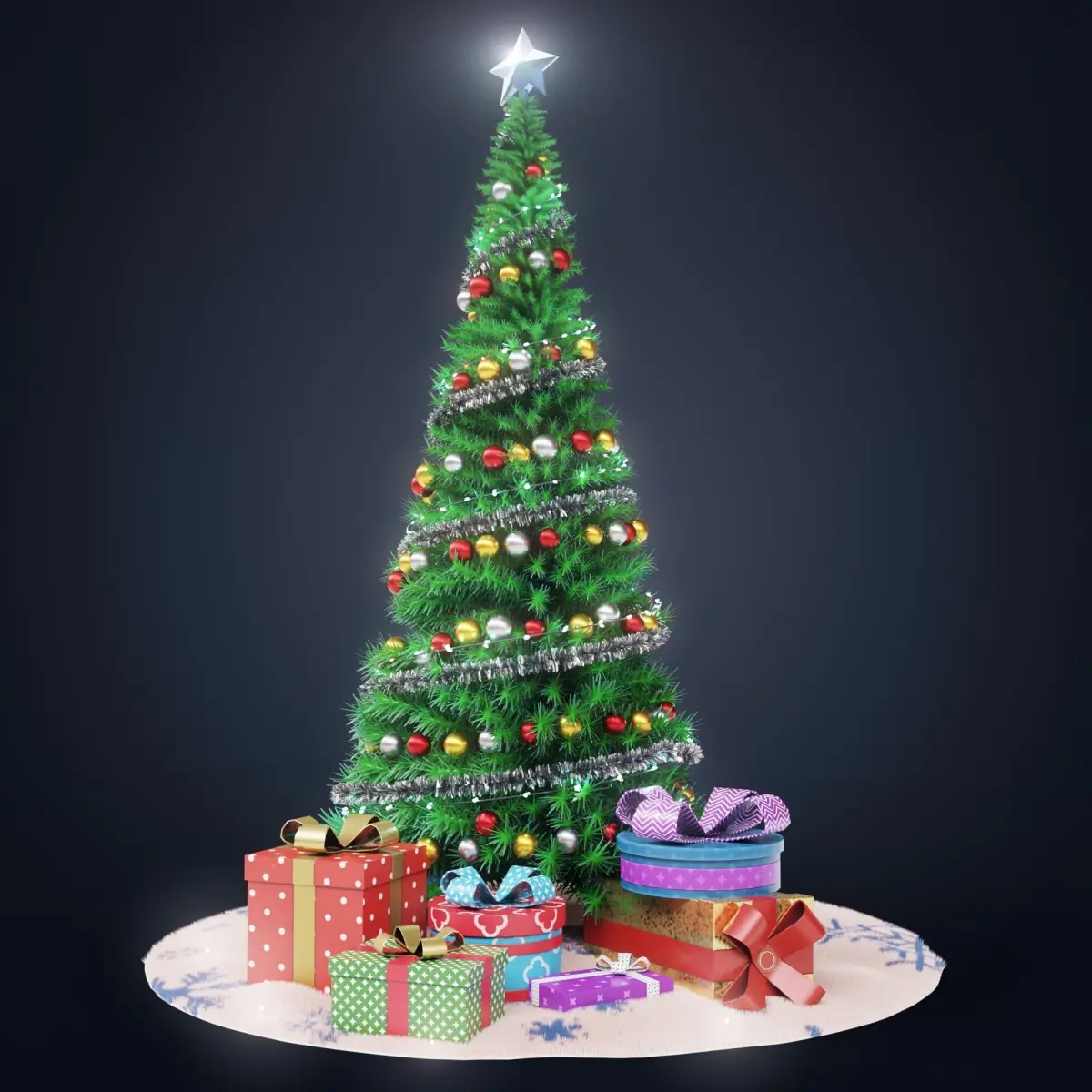 Scene with a Christmas tree. You can change the color on the balls, the color of the garland, the color of the tree itself.To transfer an asset to your scene, you can simply copy an asset from one open scene to another using ctrl + c / ctrl + v.