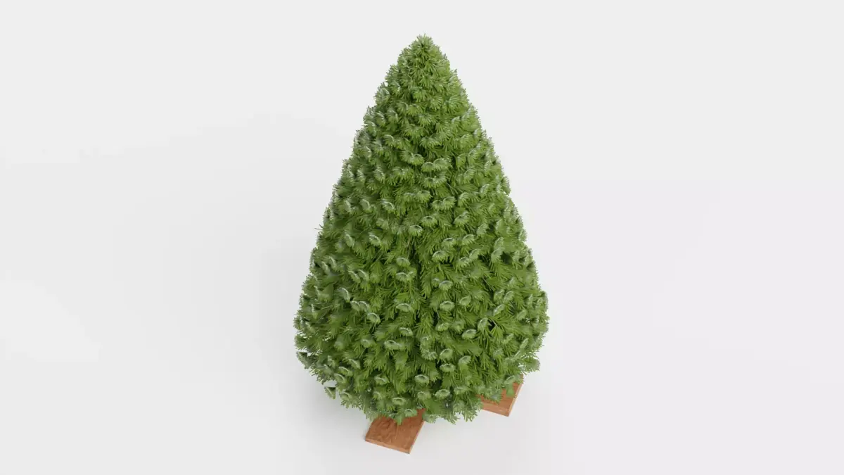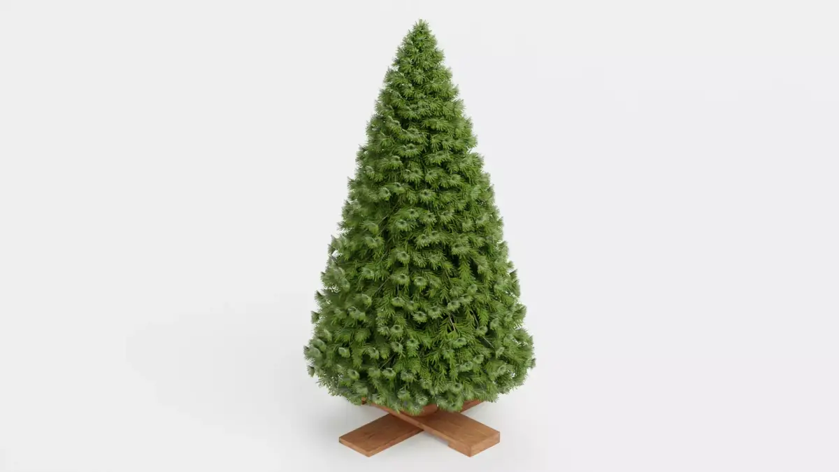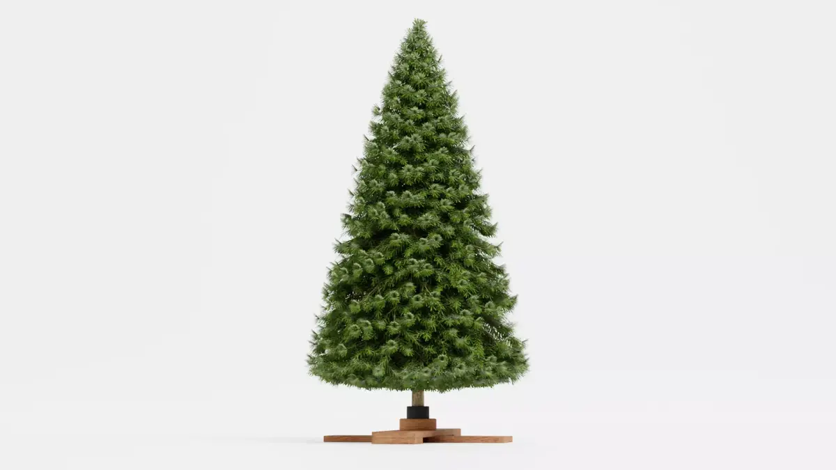 A high-quality 3D model of a classic Christmas tree, designed for realistic festive scenes and product visualizations. The model features a well-balanced, symmetrical conifer shape with dense needle detail and a wooden stand base for authentic presentation. This unadorned version provides a clean, neutral base suitable for custom decoration, lighting setups, or product display, making it ideal for both interior renders and seasonal visual identity projects.