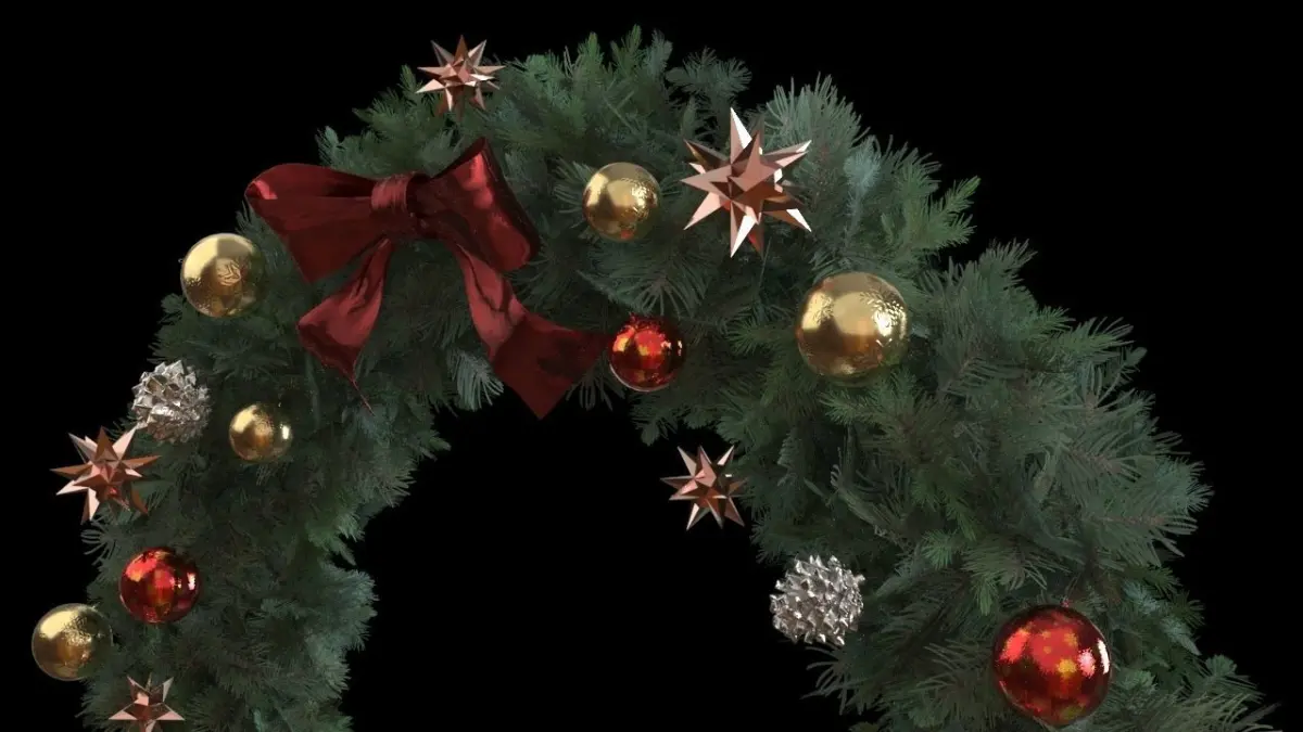 A 3D model of a christmas wreath all set for the holiday season. V-Ray ready renders, PBR material included. Ideal for an Arch-Viz exterior scene.