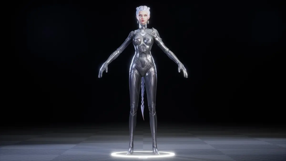 This is a 3D model of a sleek and futuristic chrome girl, showcasing a polished, metallic finish that exudes a high-tech, cybernetic vibe. Her reflective surface adds a stunning visual appeal, making her ideal for sci-fi, cyberpunk, or futuristic-themed projects. Perfect for use in games, animations, or digital art, this model combines elegance with a cutting-edge aesthetic. Fully compatible with platforms like Unreal Engine, Unity, Blender, and more, it integrates seamlessly into creative works. Whether for game assets, cinematic renders, or conceptual art, this chrome girl brings a bold and innovative presence to your projects.SUITABLE FOR MAKING CINEMATICS AND SHORT FILMS Included textures