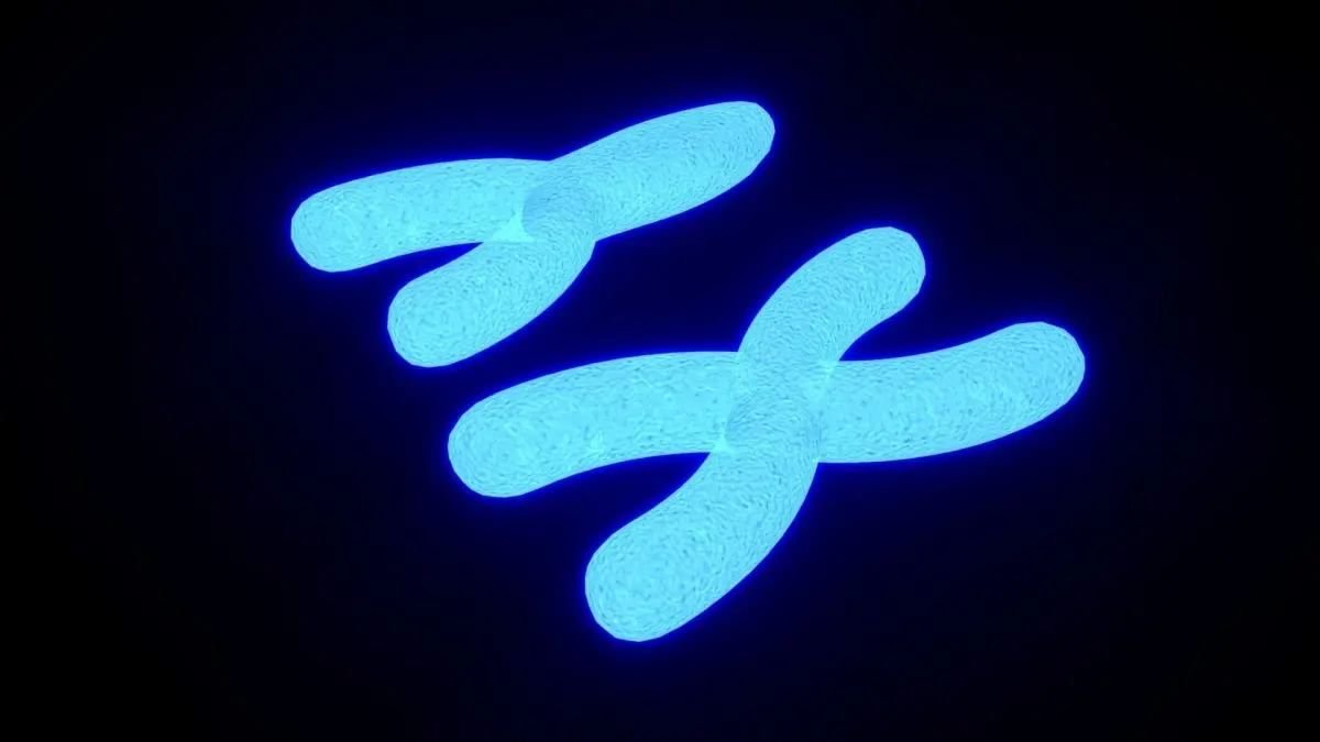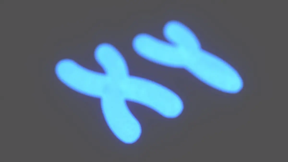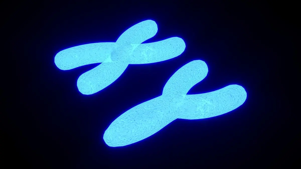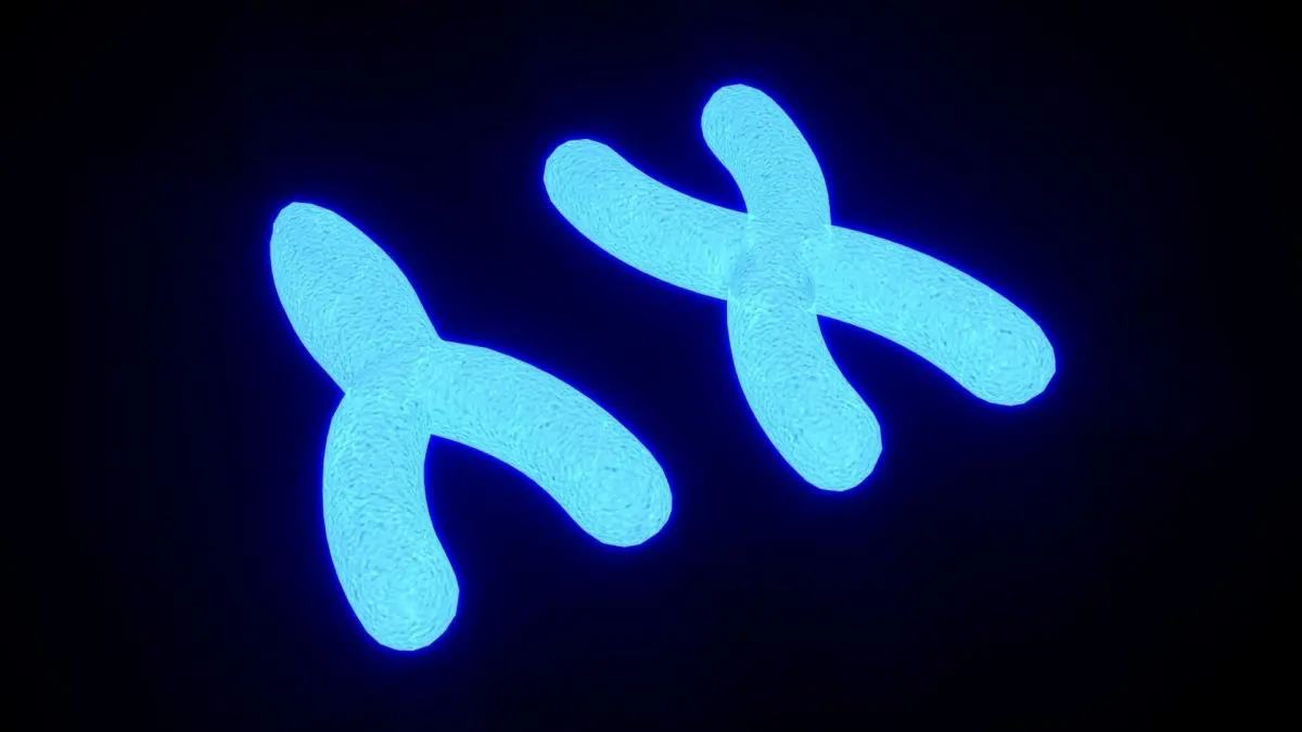 Chromosome X and Y with a double helix DNA inside.