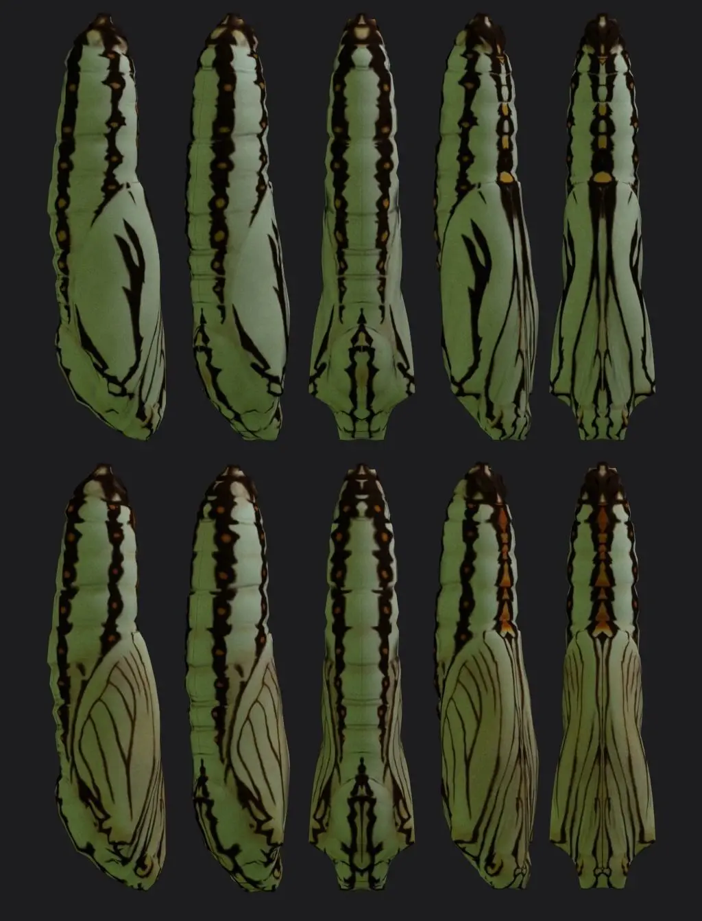 A high detailed Chrysalis done in zbrush. (Heliconiinae)