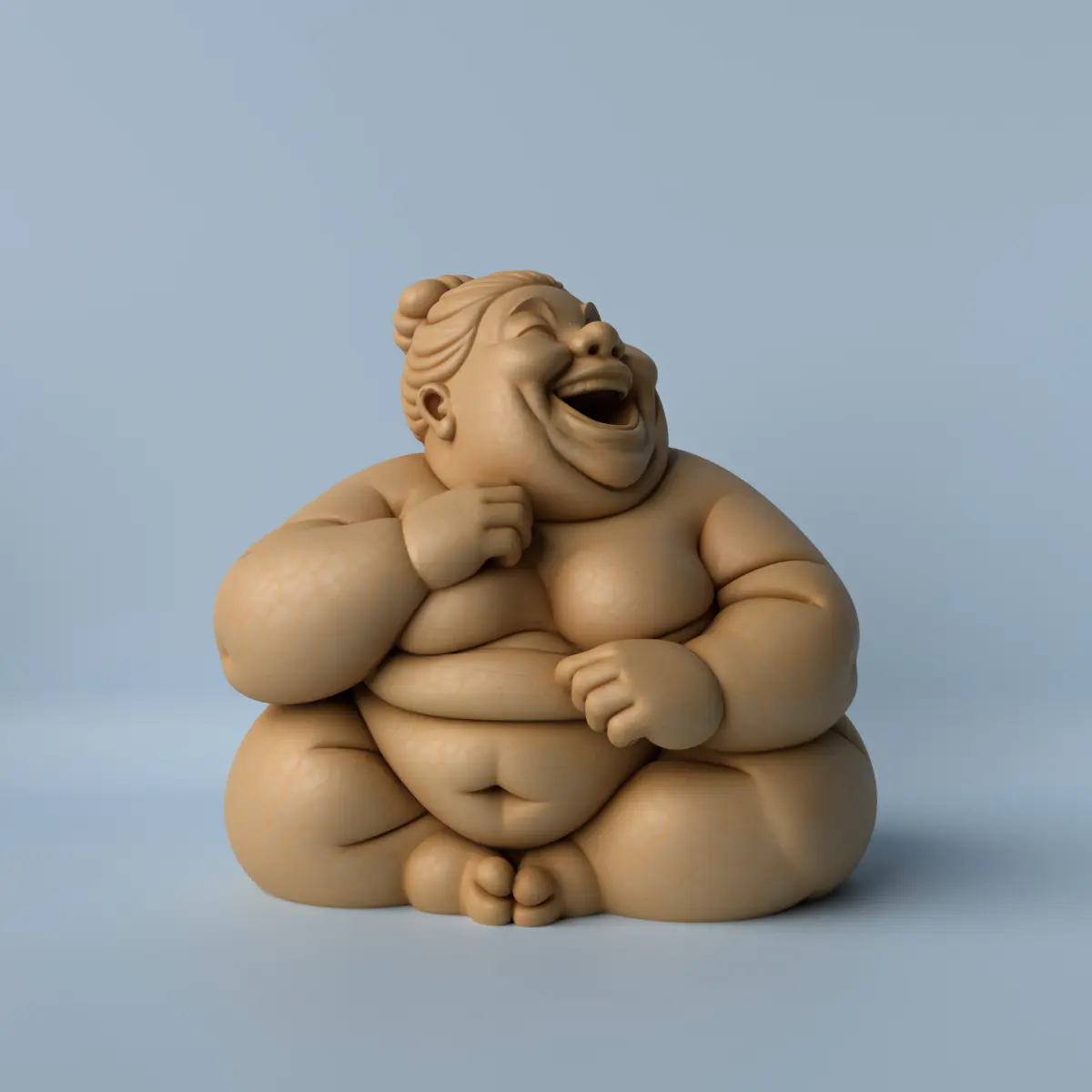 A delightful sculpture of a chubby woman sitting and laughing, radiating joy, self-esteem, and lightness. With rounded forms and a spontaneous expression, this fun piece celebrates real beauty and adds humor and warmth to any space. Perfect for 3D printing and ideal for decorating living rooms, offices, or creative environments.