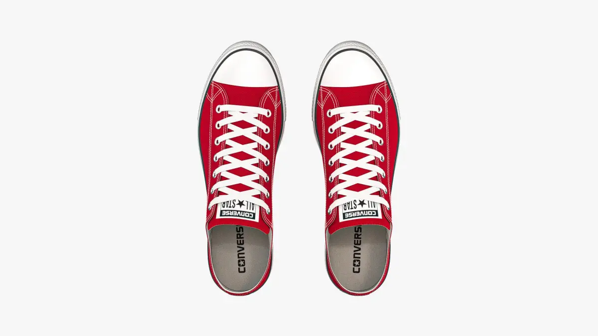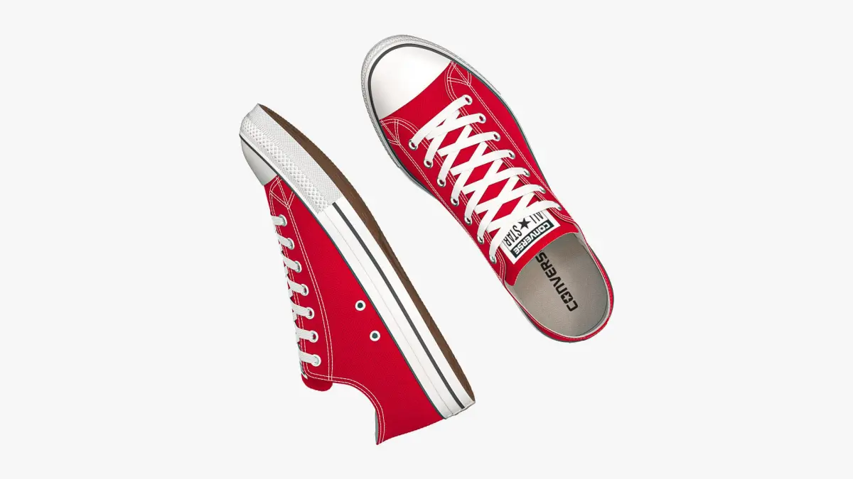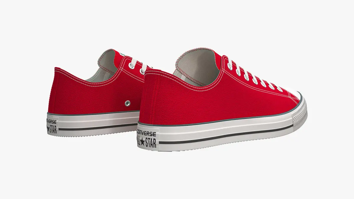 Detailed 3D model of a pair of Red Chuck Taylor All Star Classic Low Top sneakers, modeled in Cinema 4D and rendered with V-Ray 5. The model was created using approximate real world dimensions.