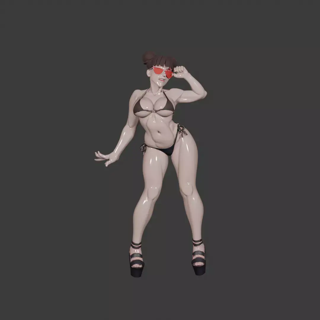 A fan-made 3D model of Chun-Li, inspired by her iconic appearance in the Street Fighter series. This model captures her powerful physique, balanced stance, and signature blue qipao design. With detailed stitching, armored bracelets, and stylized hair buns, the character reflects both her elegance and unmatched martial arts strength.