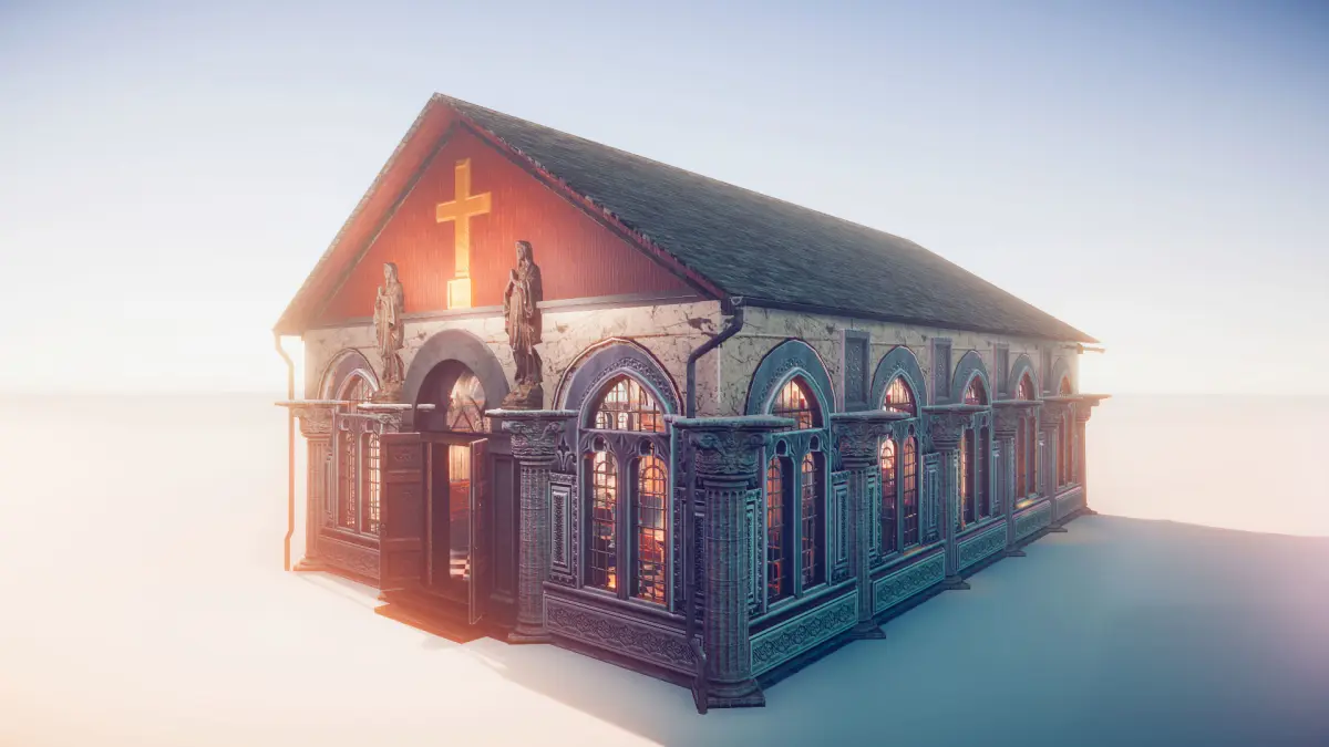 This is a construction set - the church is divided into separate elements (floor, windows, entrance, ceiling, pillars).