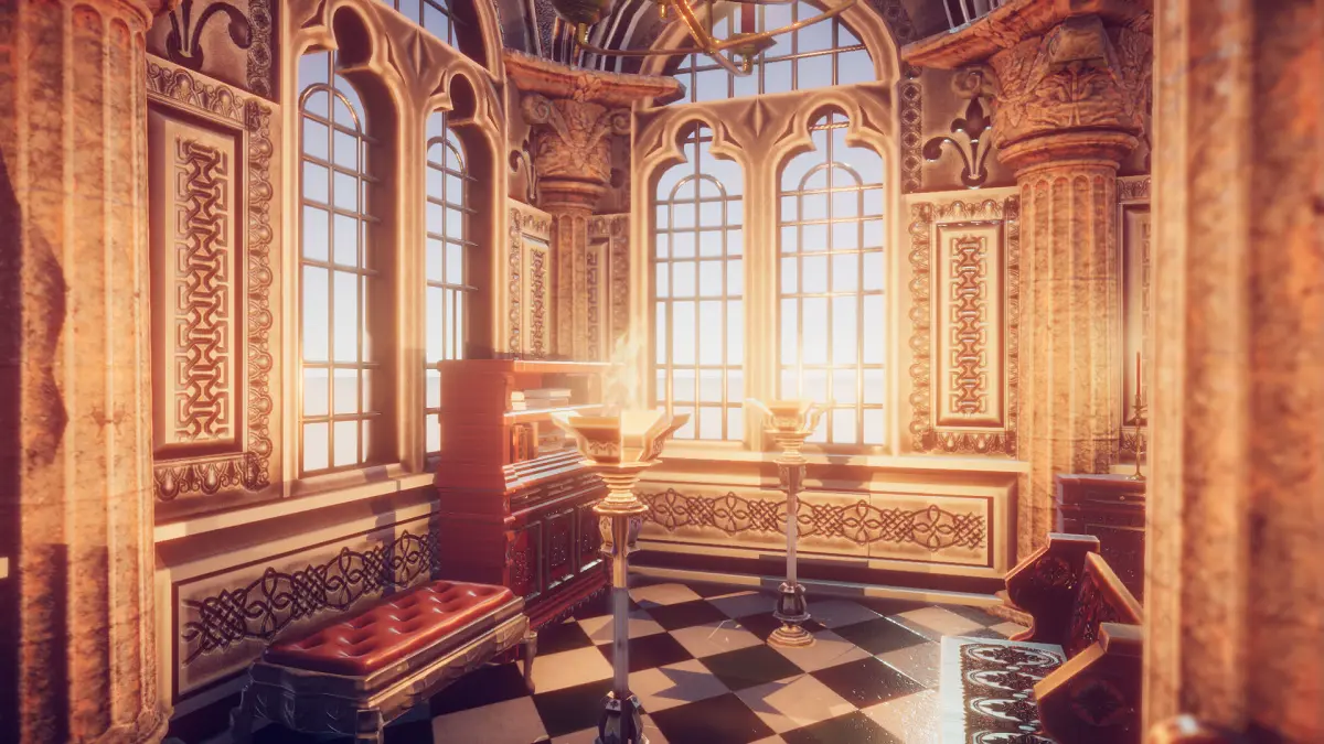 Including additional props like benches, tables, chandeliers, candles, books, shelf, cabinets, carpets and others.