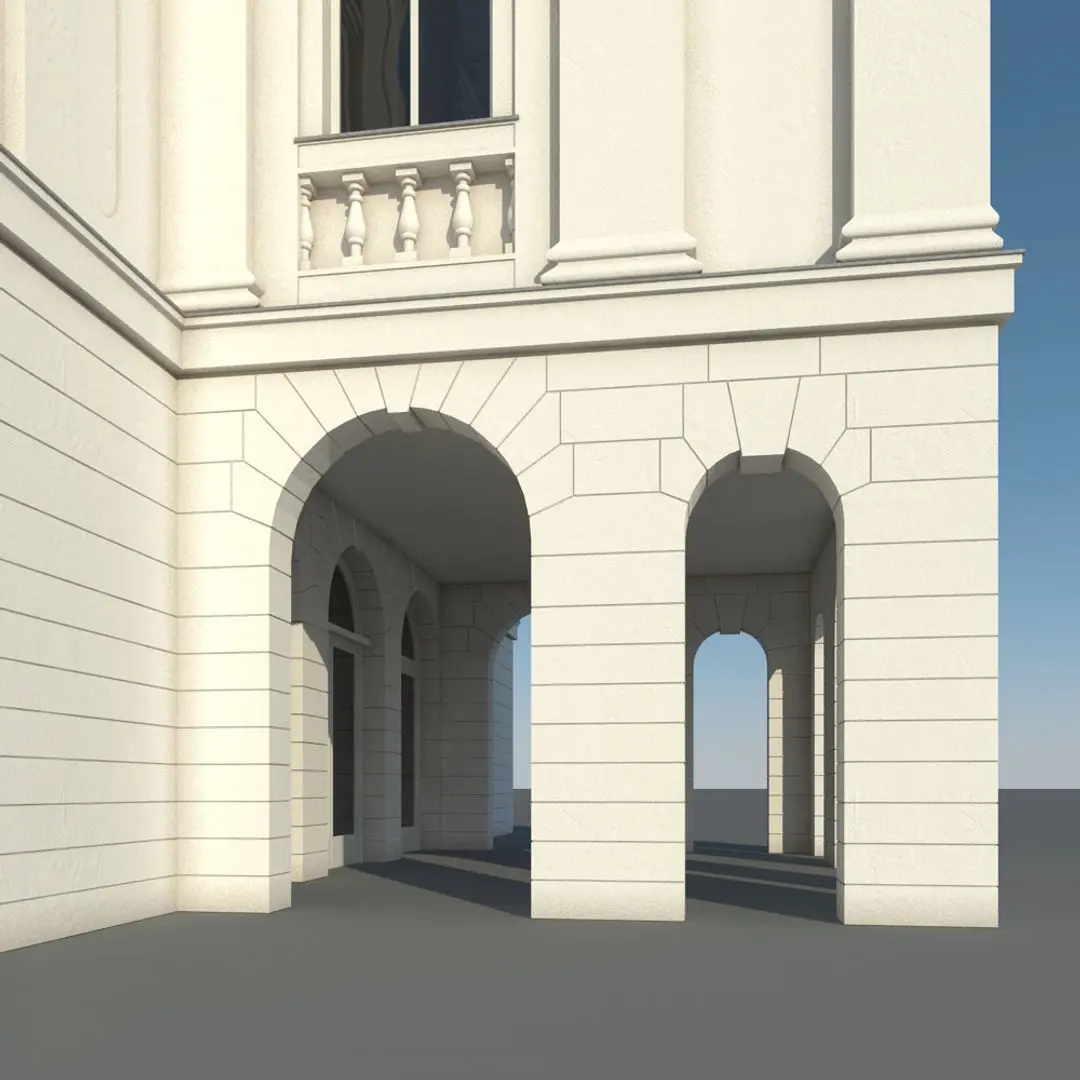 - the shader uses a bumpmap and vraydirt for its used look. some parts like the balcony uses the same material but different dirt settings
