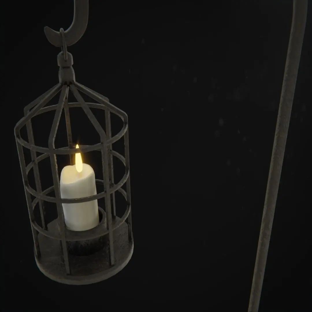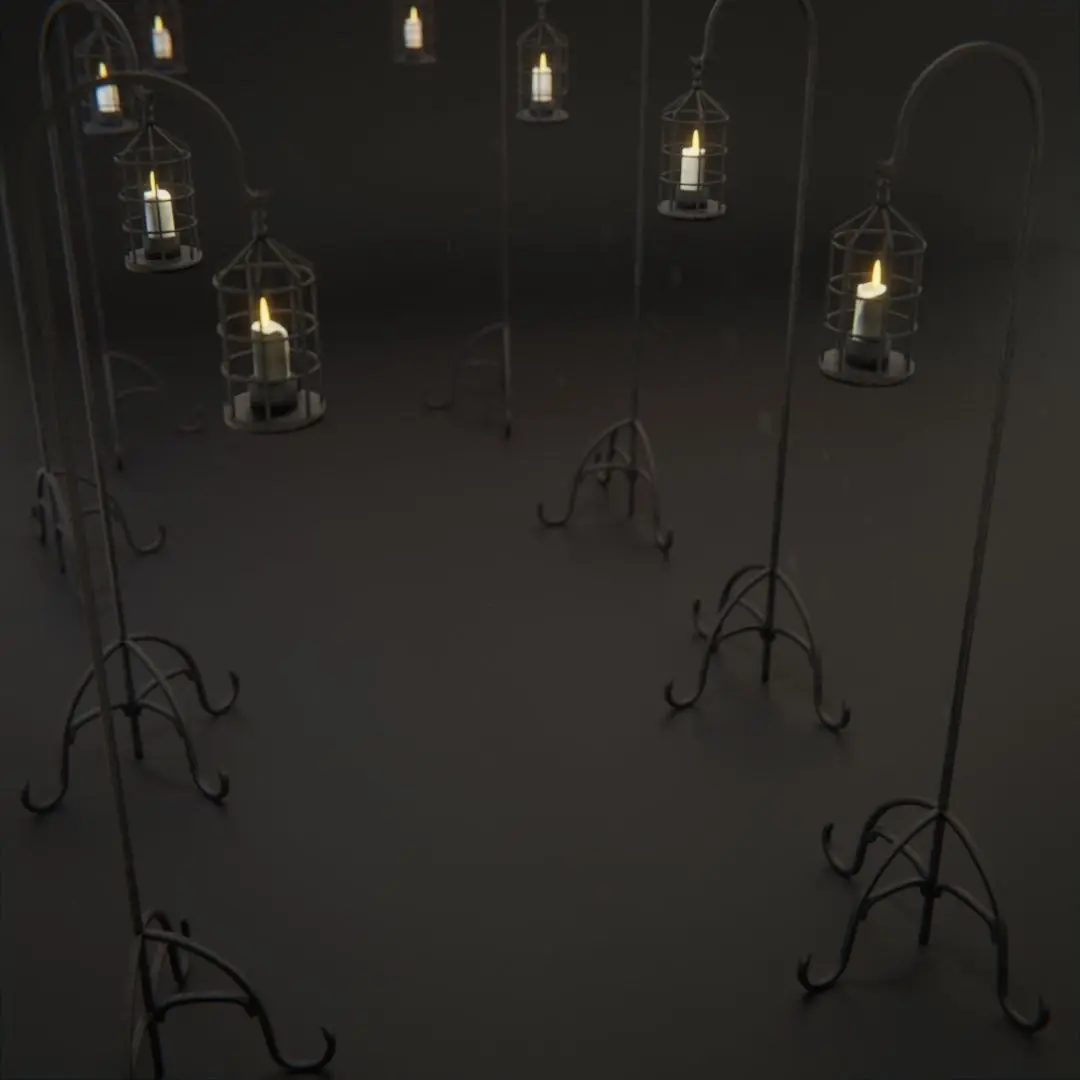 Wrought iron freestanding church aisle candle lantern on tall shepherds crook floor stand.Modelled and textured in blender 2.80Complete blend file and .fbxSingle UV unwrapped with textures included.
