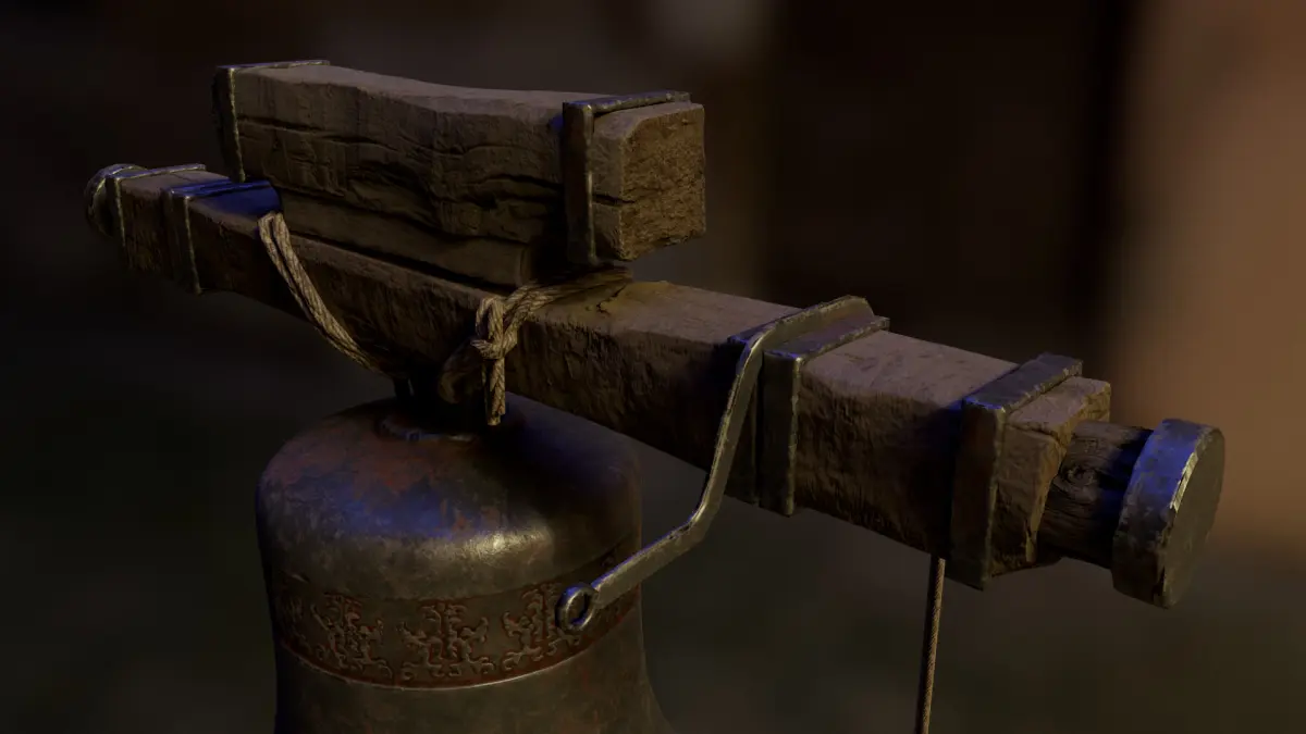 A large iron chuch bell with two variations. Rendered in Marmodet toolbag 4. Contains a PBR texture set. Game ready.