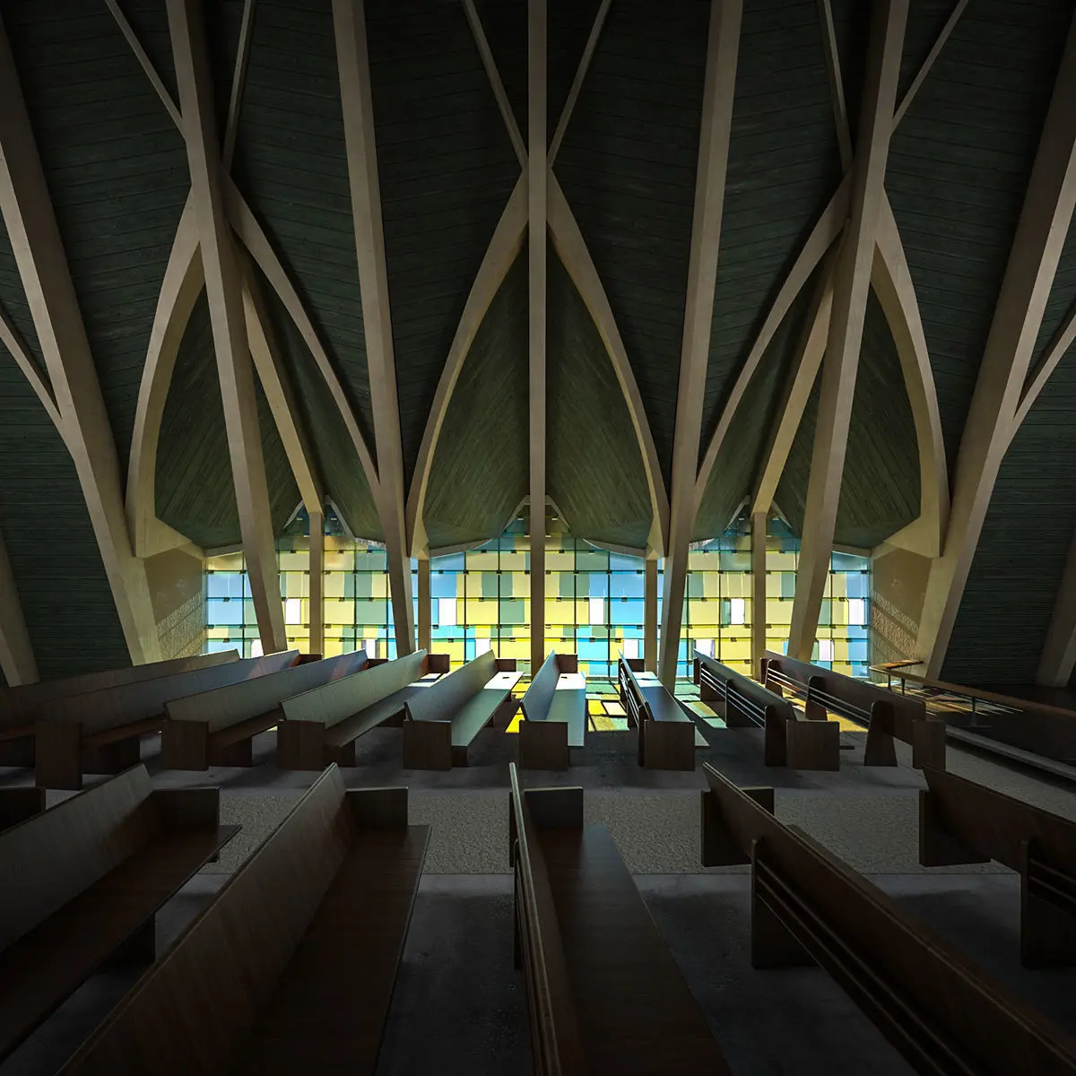 Interior model of a modernist church