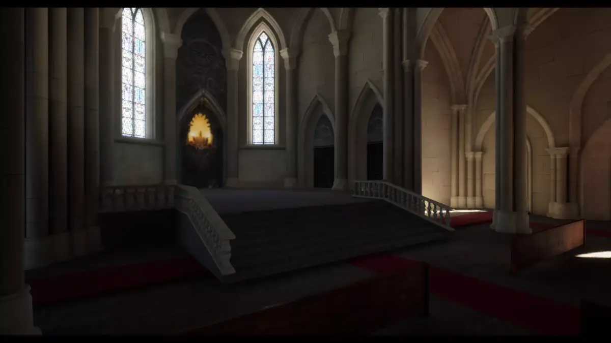 Church Images rendered with the supplied Church UE5, Blender Cycles and Unity Univeral Render Pipeline Project files