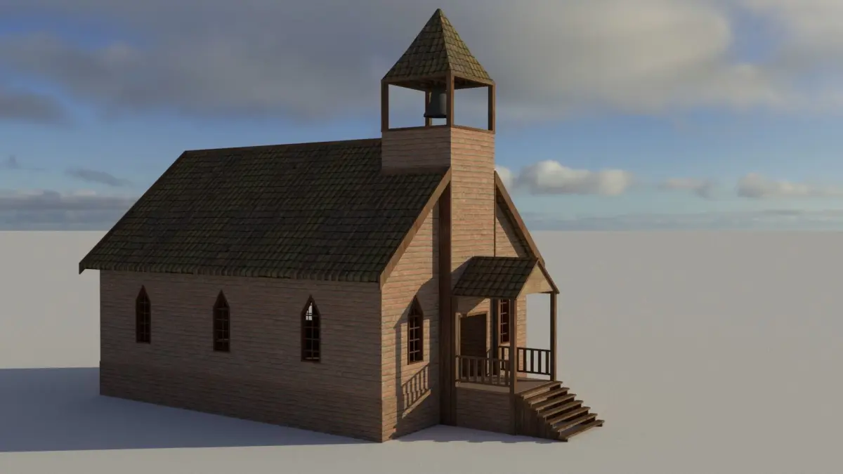 A 19th century era Church with a bell tower and a modelled interior. Works great for both interior and exterior use in modern game engines or for rendering purposes. The interior consists of a stage area, a staircse and an upstairs area with railings over looking the downstairs area. The Exterior has a stairway entrance and a bell tower.