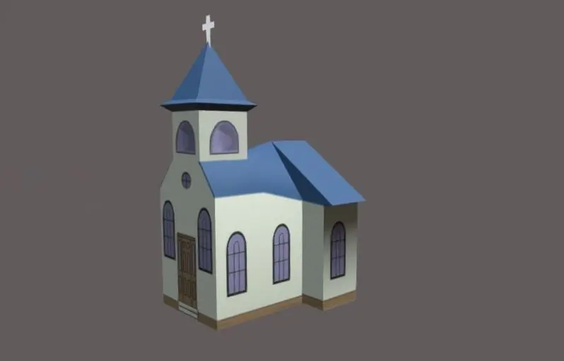 Church Low-poly 3D model with roof Free low-poly 3D model