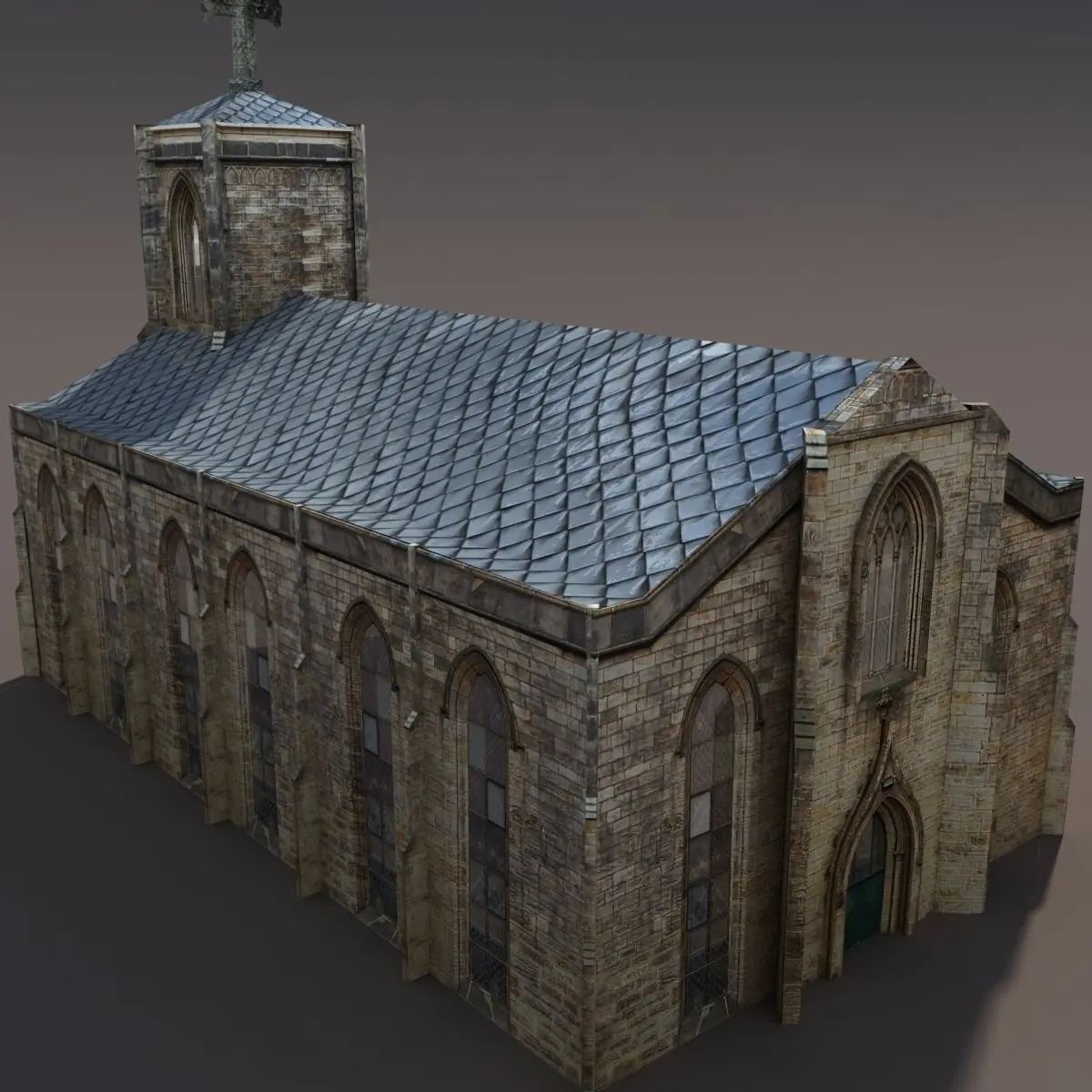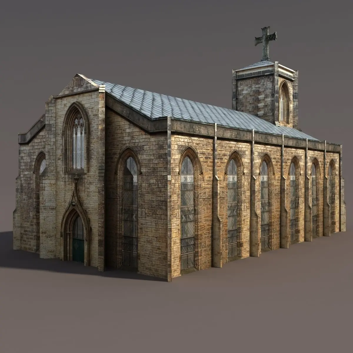 A 3D model of a low poly roman chruch. Exterior only, no interior.