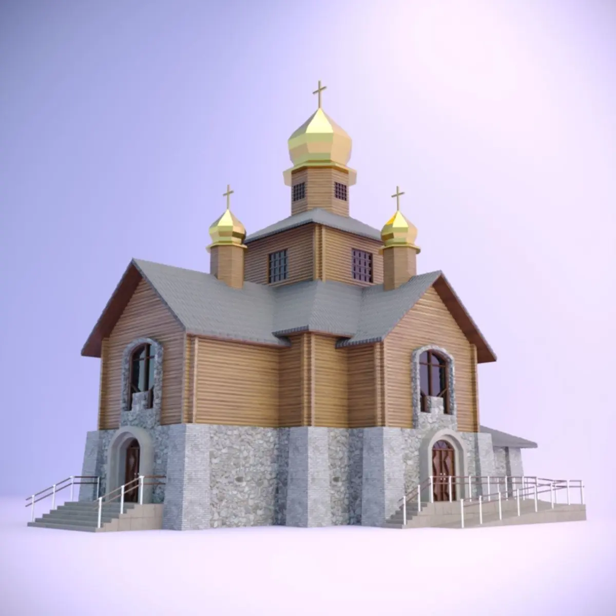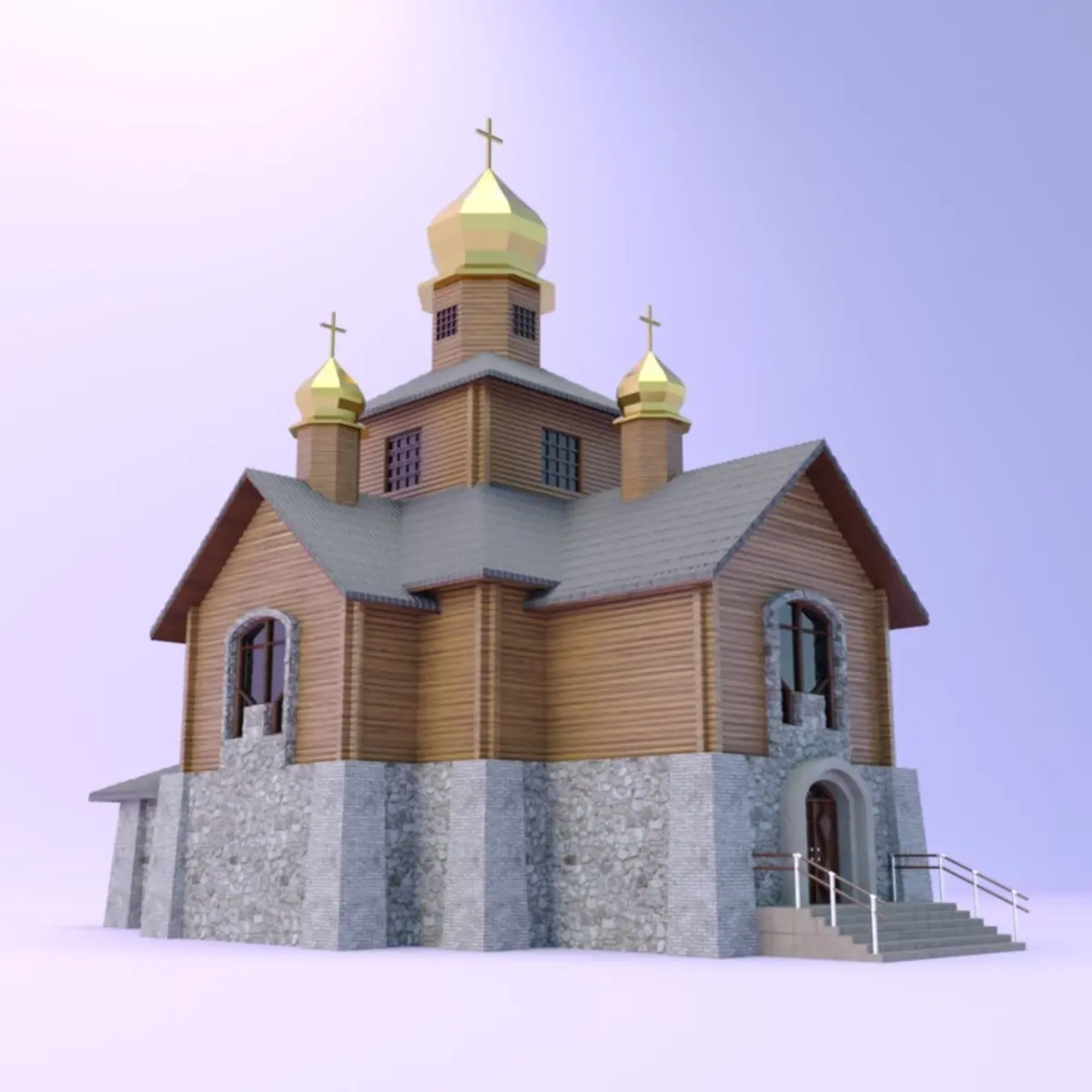 Church with a wooden log house. The model has correct geometry and does not blink when viewing. The model uses standard textures Corona render and you don’t have to add additional textures. Modernization design for cities and villages. In any case, its placement, it will decorate your exterior. Size 14 600mm * 19 720mm.