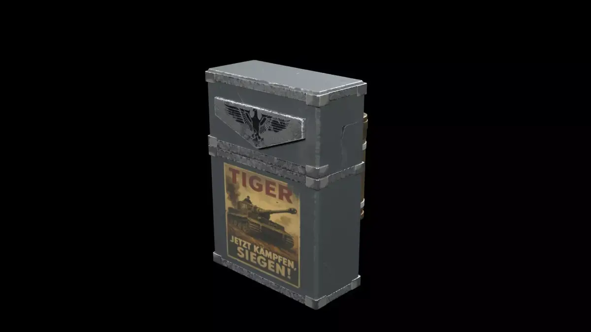 A fictional WW2-era inspired cigarette case, designed as a detailed prop for historical or military-themed projects. While not based on a specific real artifact, it represents the kind of personal item that could have been carried by high-ranking officers or given as a symbolic gift among soldiers.