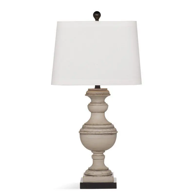 - Simply set it center stage to make your seating ensemble shine, or pull it up beside your bed in the master suite along with a few framed family photos for a personalized display. No matter where it's sitting, it's sure to be the star of the show. Taking on a traditional urn silhouette, its base is crafted of resin and features a gently distressed gray finish.