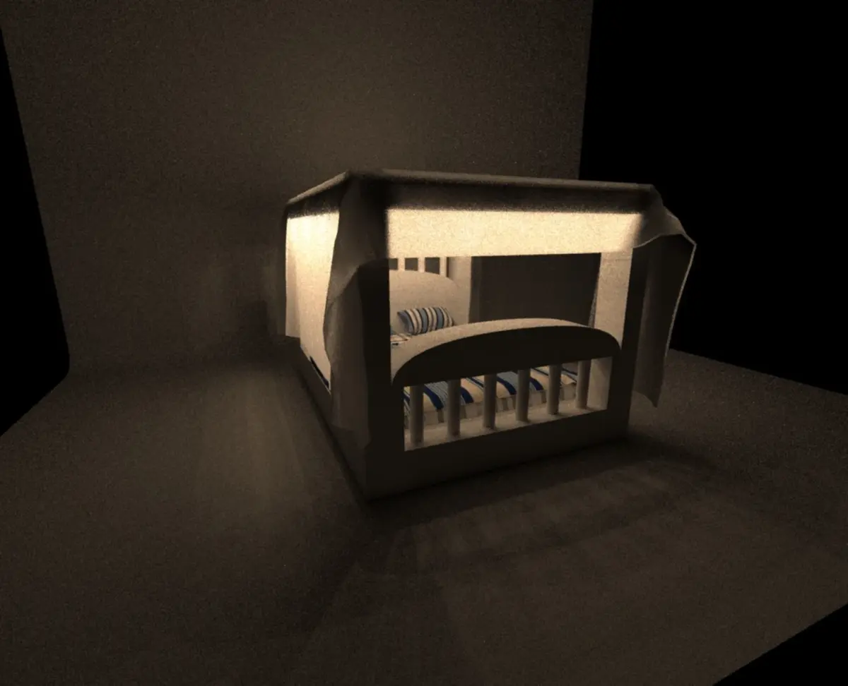 HomeCatalogCinderella Bed with string light Free low-poly 3D model