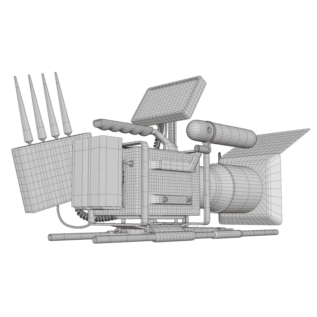 Cinema Camera modelled as a mesh base for another task, such as painting, rigging, UV unwrapping.The Spiral Cables attached to the camera model in original blend file is geometry noded, it can be used to another modelling task.
