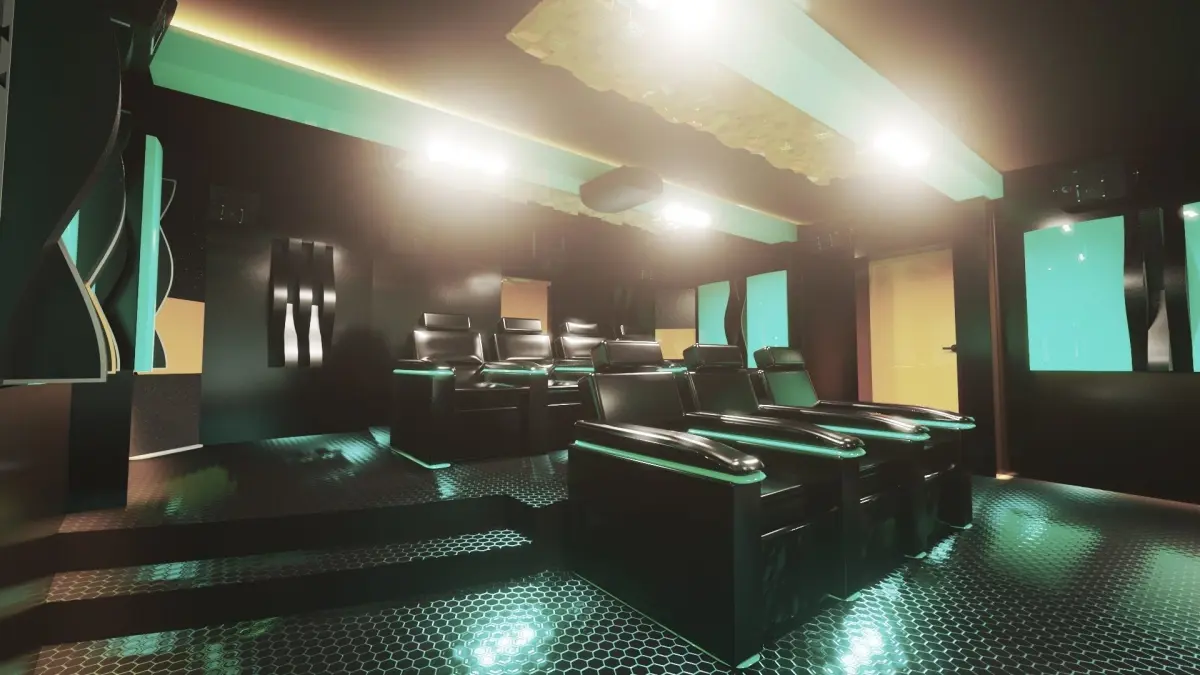 home cinema with modern vibes.i use orange and cyan for contrast.3d max sceen is ready for render with it lights and with everything you need.materials are ready and ect.